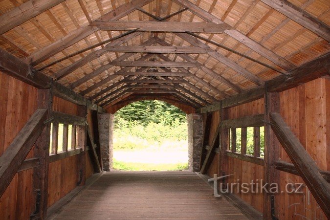 Pernštejn - dřevěný krytý most