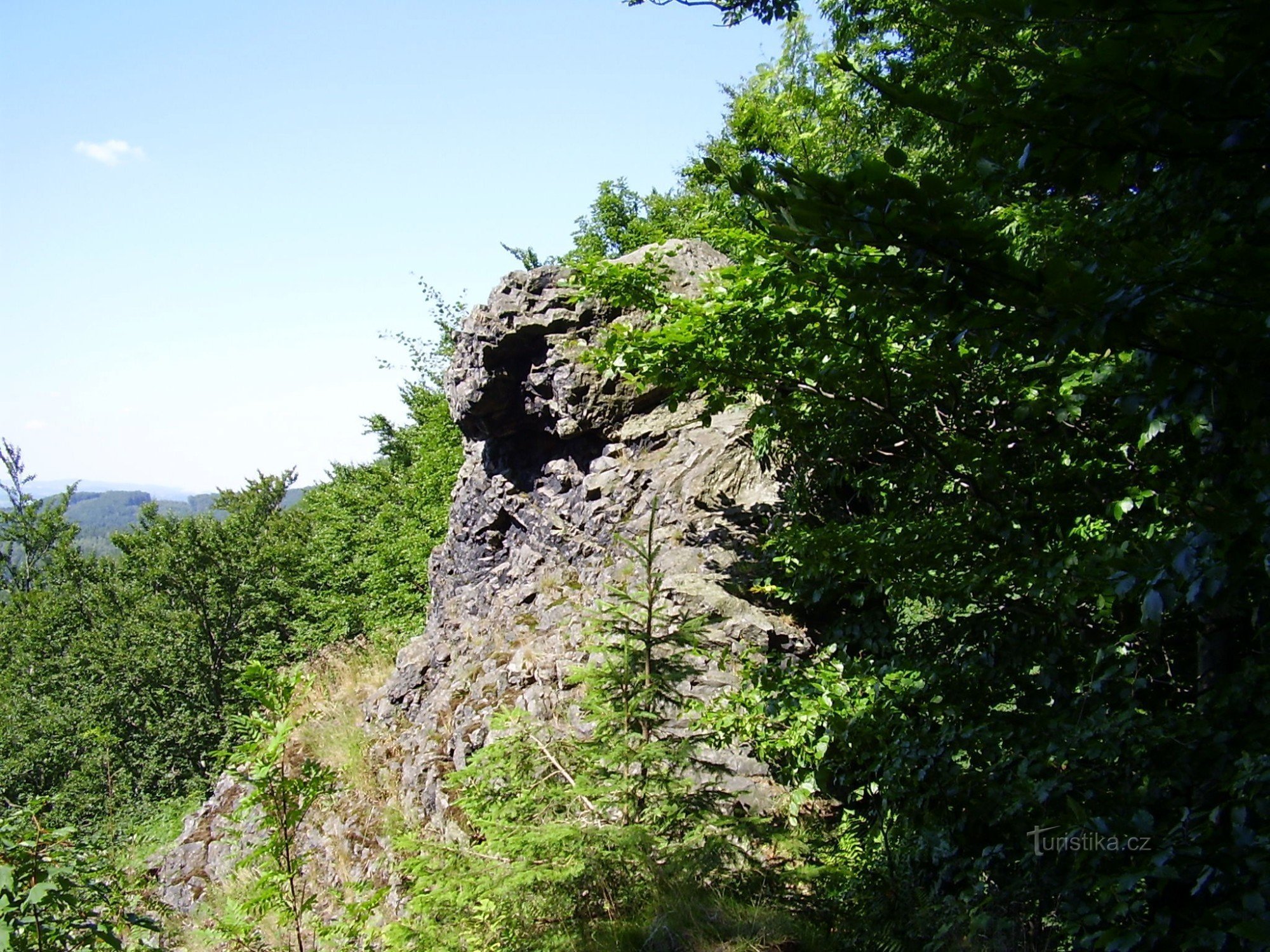 Na jihozápadním svahu kopce, asi 0,5 km nad Stožeckým sedlem je ještě jedna nevelká kupa se starým lomem, z jejíhož vrcholku vyčnívá čedičová skalka, zvaná Pětikostelní kámen (689 m). Z úpatí skalky je pěkný výhled přes údolí Lesenského potoka na Jelení kameny, Jedlovou a Tolštejn, do okolí Jiřetína pod Jedlovou a dále směrem k Rumburku. Jméno skály naznačuje, že by odtud měly být vidět věže pěti…