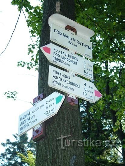 Pod Malým Ostrým je rozcestí červené a zelené turistické značky a nachází se na státní hranici s Polskem východním směrem od města Třince. Občas v těchto místech můžete potkat hlídkující celní strážníky. Rozcestník je na okraji lesa u křižovatky lesních cest. Od rozcestníku je pěkný výhled východním směrem na vrchol Ostrý ( 709 m.n.m.) a jižním směrem do údolí na obec Vendryně. Po zelené dojdeme…