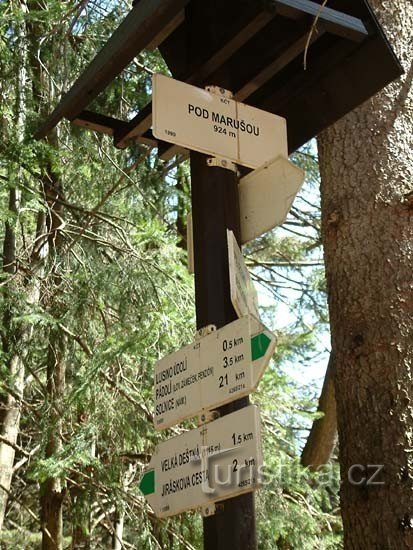 Rozcestí Pod Marušou se nachází na křižovatce lesních cest na pokraji lesa. Dojdete zde asi po 1 kilometru z Luisina údolí. Dále pokračuje zelená turistická značka přímo na nejvyšší vrchol Orlických hor na Velkou Deštnou. Po modré značce se dostanete rovněž na hlavní hřeben, na Jiráskovu cestu, ale asi o kilometr dále od Velké Deštné.