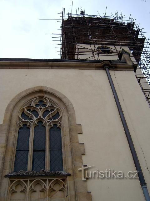 Původní základ stavby pochází ze 14. století. Stavba je gotická, vystavěná ve 14. století. První přestavby proběhly vletech 1552 - 1562. Vroce 1698 byla přistavěna barokní kaple Bolestné Panny Marie. Trojlodní budova sobdélnými prostorami sakristie aoratoří po stranách. Stěny kostela spolu sokny jsou přestavěny vpseudogotickém stylu. Okna vpresbytáři mají gotické ostění aokno vose presbytáře mají…