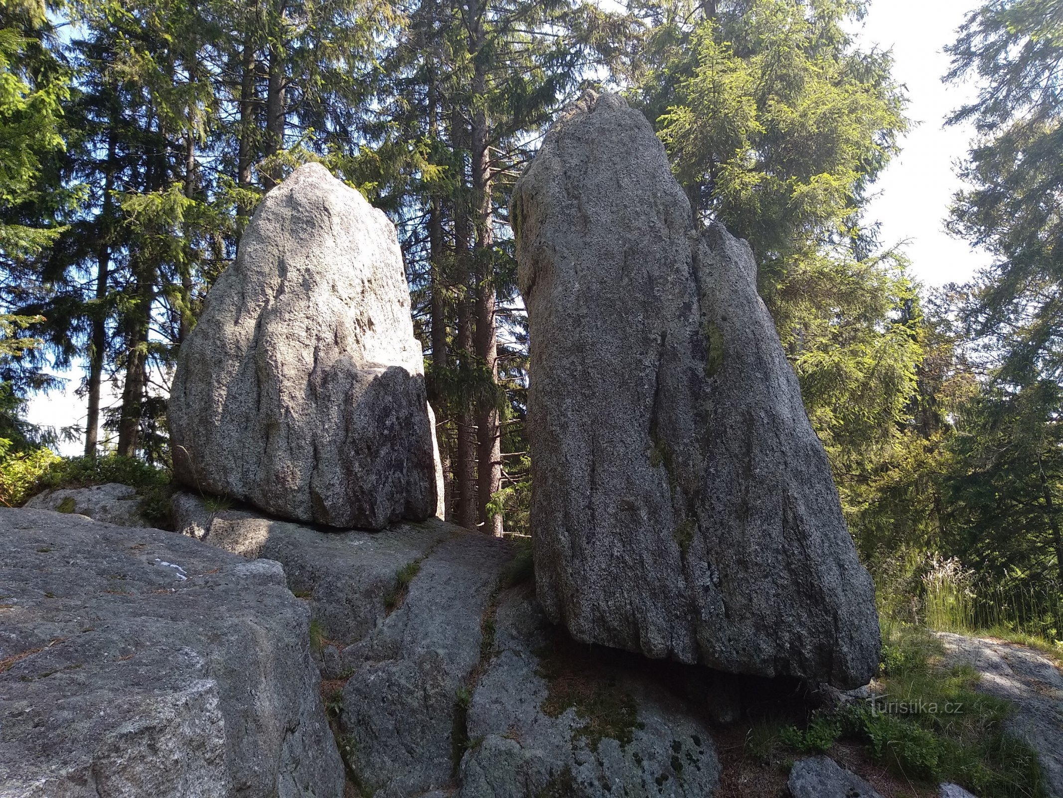 Asi 3,5 km od šumavského městečka Strážný najdeme zvláštní místo. Na skále jsou tam postaveny dva balvany. Ano, skutečně jsou tam postaveny, nejsou se skálou nijak spojené. Jejich spodní strana je opracována tak, aby pěkně seděla na vrcholové plošince skalky. Nebo to mohlo být naopak. Vrcholek skalky byl upraven tak, aby na něm vybrané kameny pěkně seděly. Mají tvar skoro jako homole a najdeme je…