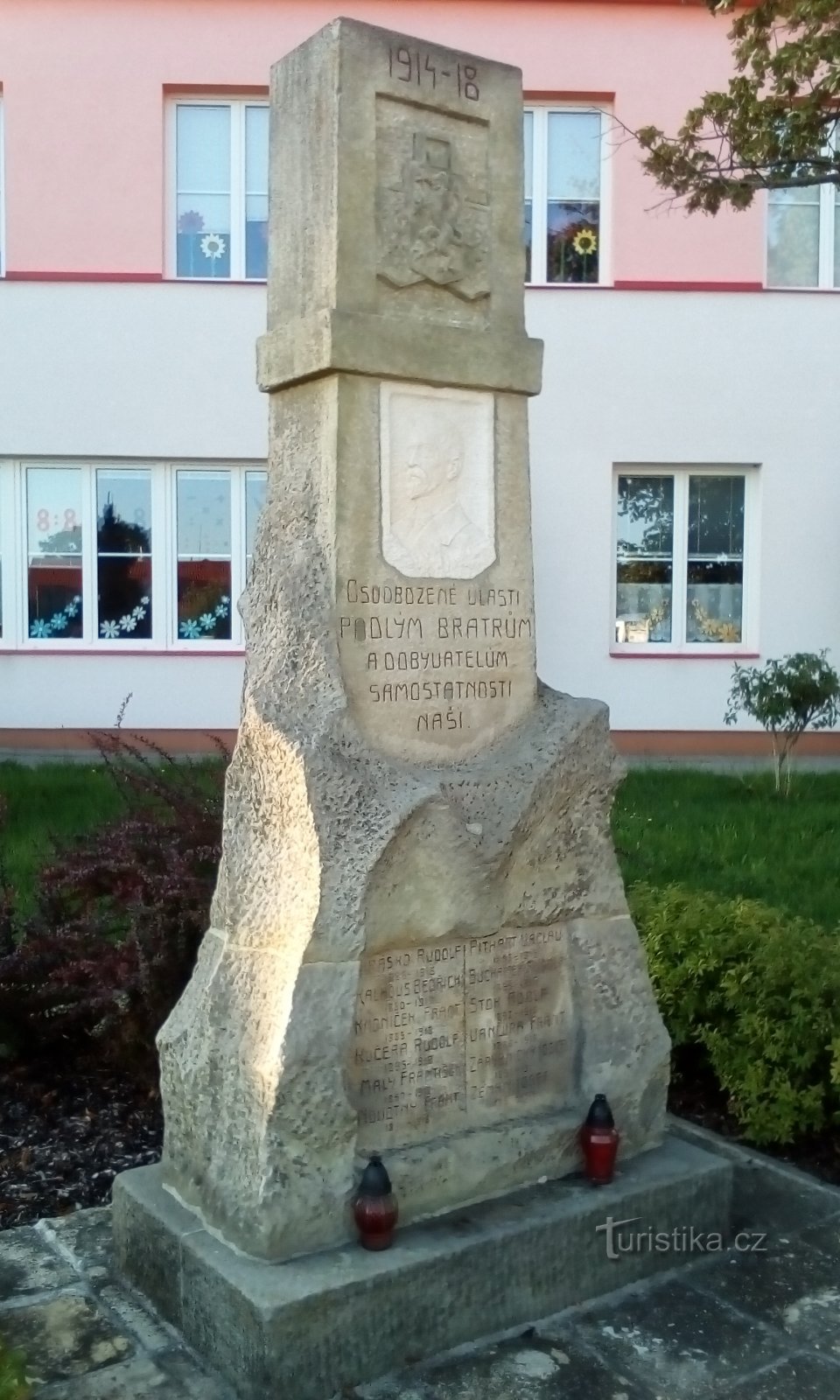 Pomník se nachází na Pohránovské ulici v centru obce, před školou. Na pomníku je reliéf T.G.Masaryka.