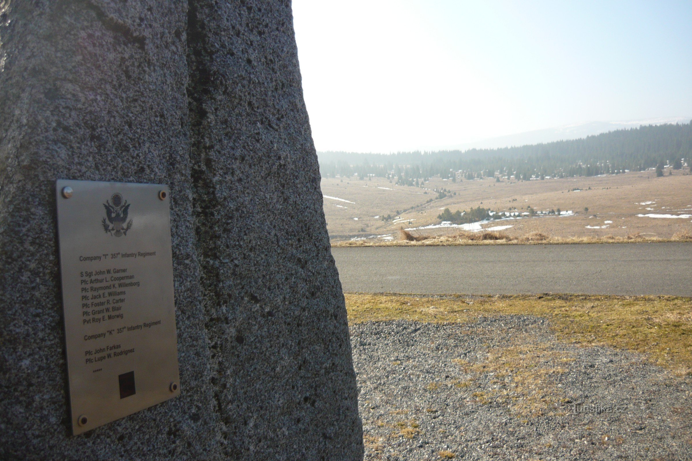 Pomník je věnovaný americkým vojákům, kteří padli při bojích v bývalé obci Zhůří za 2 sv. války.