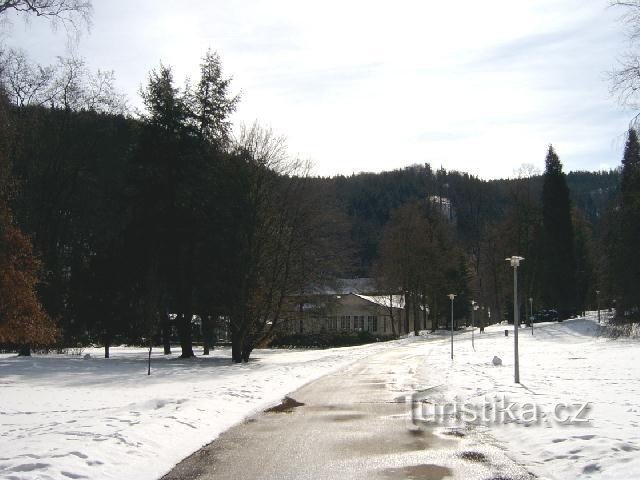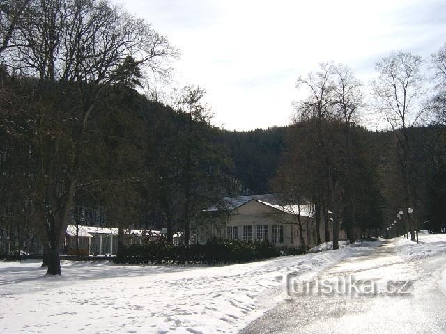 Klasicistní stavba z r. 1791 postavena karlovarským poštmistrem Josefem Korbem, aby sloužila jako přepřehací stanice poštovních koňských spřežení. Později se z objektu stalo významné společenské středisko. Dne 20.července 1894 zde zazněla poprvé na evropském kontinentě Dvořákova symfonie Z nového světa. V objektu se nacházejí sál Labitzkého z roku 1791 a sál Pruský z roku 1818 a lázeňskými hosty…