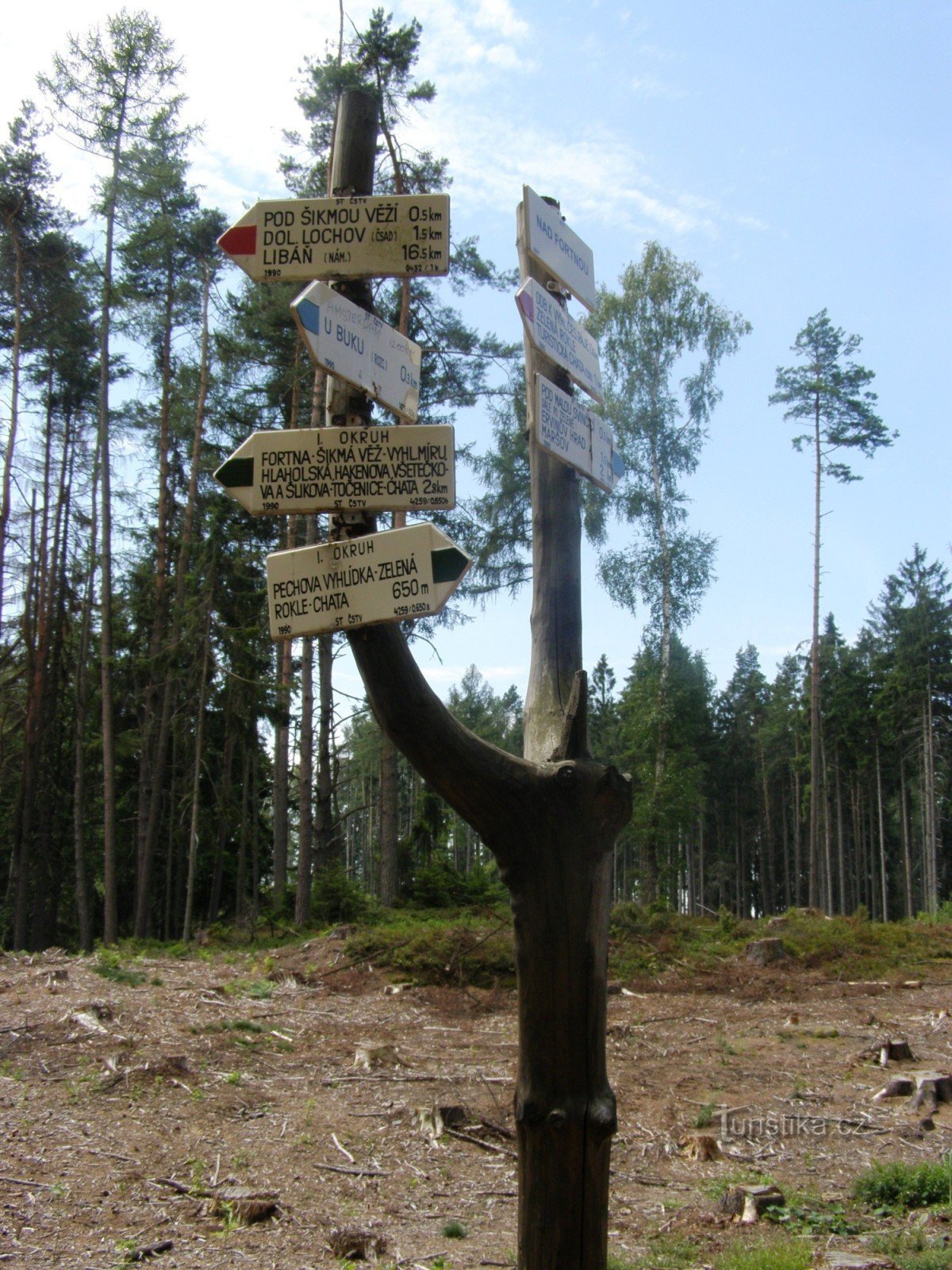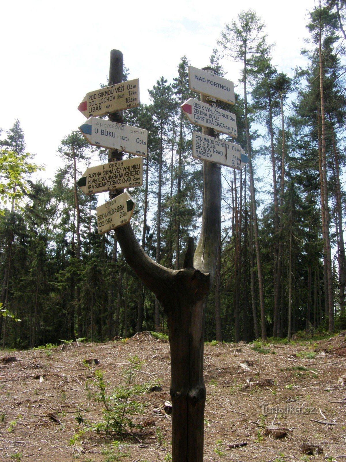 Turistický rozcestník, který se nachází v lokalitě Nad Fortnou ukazuje turistům cestu do tří směru. Po značce červené ve směru Turistická chata - Dolní Lochov, Staré Hrady, Libáň, po značce modré ve směru rozcestí U buku - rozcestí Pod Malou Svinčicí a po zeleně značeném I. skalním okruhu.