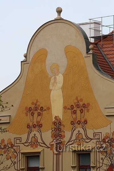 Pozoruhodná secesní vila, kterou si v roce 1903 postavil podle vlastního návrhu smíchovský stavitel Alois Korda. Kromě výrazného hranolového nároží se segmentovým oknem zaujme i bohatá výzdoba, která je dílem malíře Františka Koblihy. Na boční fasádě anděl se zlatými Křídly, v čele pak sluneční hodiny tvořené reliéfem slunce a celé to doplněno květinovými vzory.