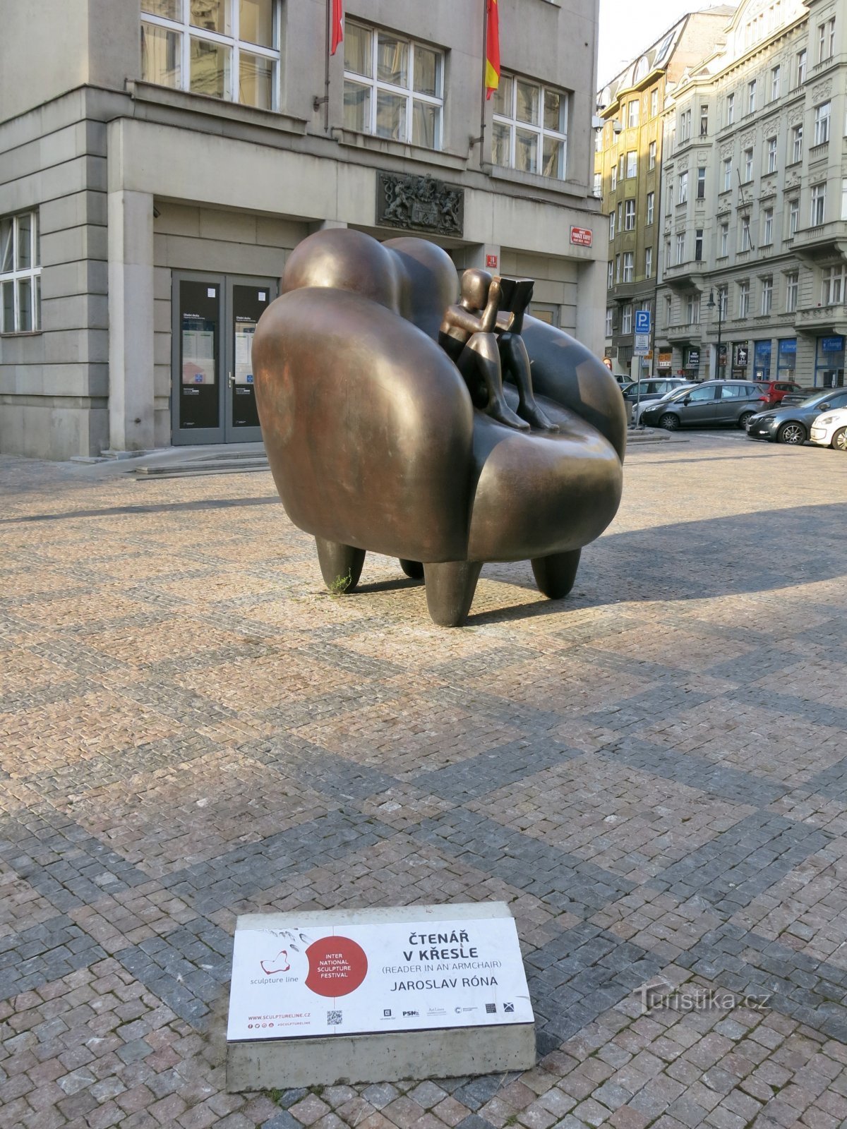 Bronzová socha Jaroslava Róny Čtenář v křesle vznikla v rámci mezinárodního sochařského festivalu Sculpture Line 2019 a najdeme ji na pražském náměstí Franze Kafky, tedy v těsné blízkosti náměstí Staroměstského. Jedná se již o třetí variantu monumentální sochy, která původně vznikla před sedmi lety. aby ozdobila prostor před knihovní budovou v Hradci Králové (k čemuž ovšem nakonec nedošlo).