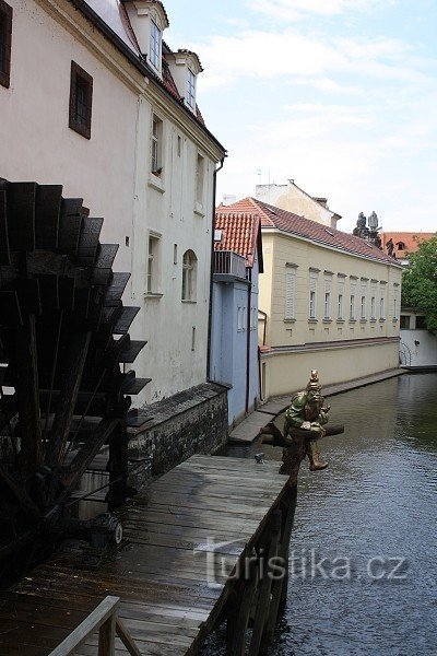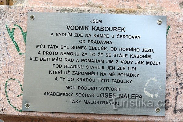 Socha vodníka Kabourka je dílem malostranského sochaře Jana Nálepy. Zhotovena byla roku 2010.