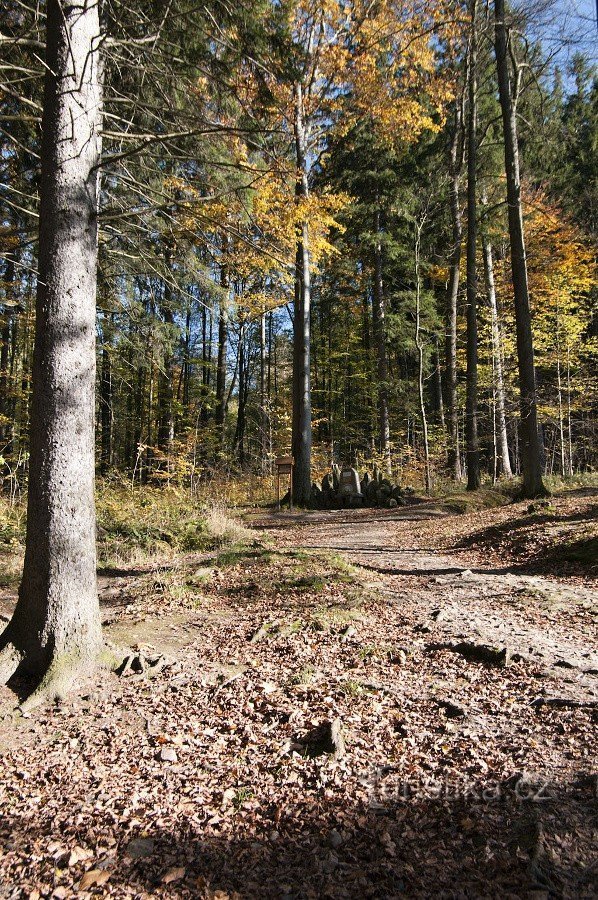 Poněkud stranou od hlavních stezek ve Smetanových sadech v Jeseníku najdeme pomníček s pramenem zvaným Skalka. Naštěstí je celkem dobře dostupný po okraji trávníku pod Anglickým pomníkem a všeteční návštěvníci k němu dávno vyšlapali malou pěšinku.