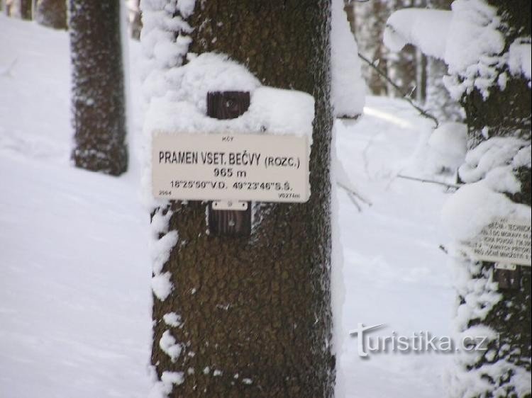 Pramen Vsetínské (Horní) Bečvy. Leží na trase Třeštík - Bumbálka asi v polovině.