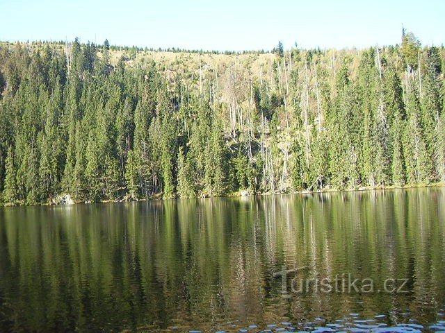 Trasa vede zrozcestí ,,U Prášil" přes Prášilské jezero, Poledník a Prášili měří asi 14km. Prášilské jezero Prášilké jezero je jedním z pěti Šumavských jezer.Nachází se v nad mořské výšce 1080 m.n.m. Maximální hloubka je 14 metrů a 90 cm.Rozloha jezera je 3,7 ha.Vodu jezera odvádí…