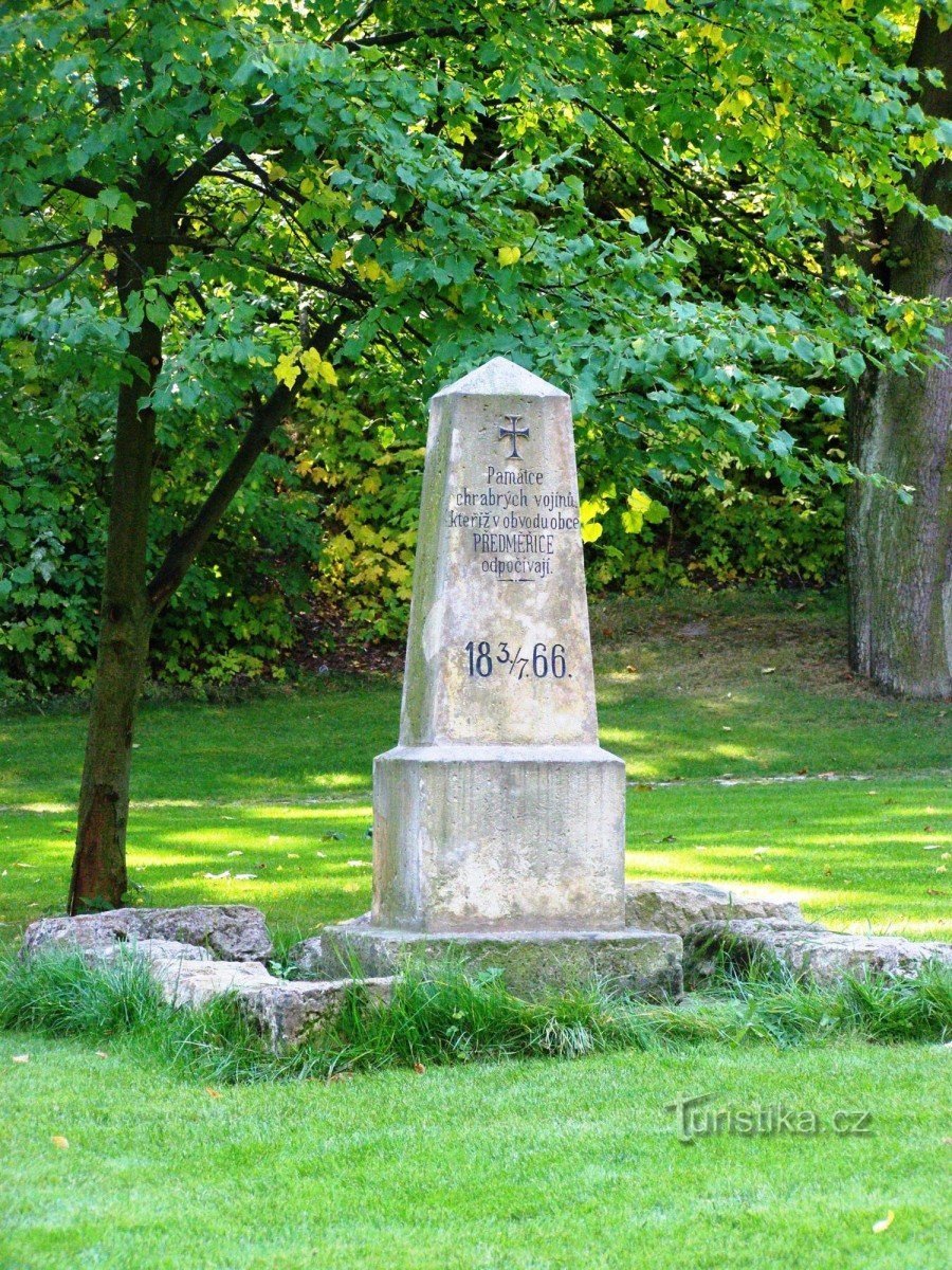 Přibližně v centru Předměřic, mezi obecním úřadem a sportovní halou, se nalézá místní park. Krom dřevěného altánu a laviček se zde nachází také pomník věnovaný vojínům, kteří padli v okolí Předměřic v průběhu bitvy prusko-rakouské války r. 1866. Na okraji parku, za zdobným oplocením, je umístěn pomník ukřižování s pozlaceným Ježíšem na kříži.