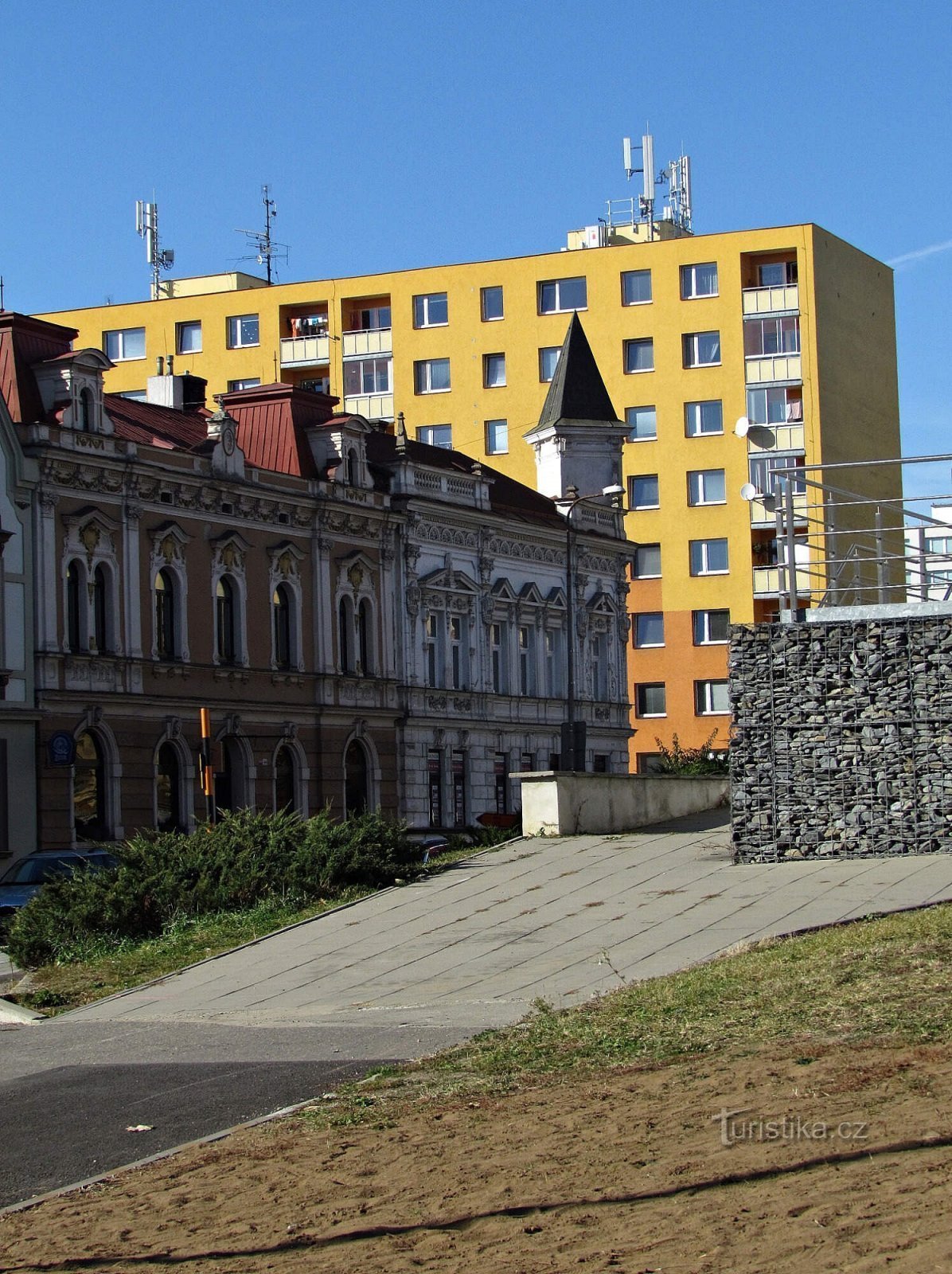 Velmi zajímavým a skoro až snovým výjevem působí pohled na zástavbu Komenského ulice u jejího průsečíku s ulicí Palackého. Hlavní dopravní tepnu lemuje blok krásných načinčaných stavení vystavěných ve stylu secesním anebo historizujícím. Tato velmi působivá připomínka „starých časů“ se táhne i po jedné straně Palackého ulice do délky asi sedmdesáti metrů a v jednom z historických domů se nachází…