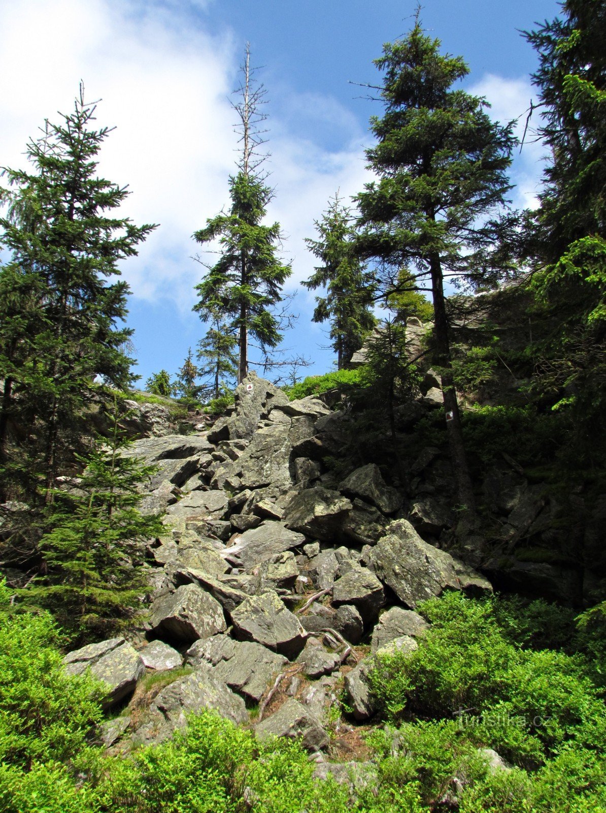 Pokud si po prohlídce nejatraktivnějších míst, nacházejících se na temeni Příčného vrchu v okolí Hornické NS, vyberete k dalšímu pokračování své cesty červenou značku, směřující do Heřmanovic, určitě neprohloupíte, neboť se dostanete ještě k jednomu zajímavému místu. Po kilometrovém sestupu po zpevněné cestě přijdete k rozcestníku se jménem Hornické skály. Dobře viditelná stezka vás po chvilce…