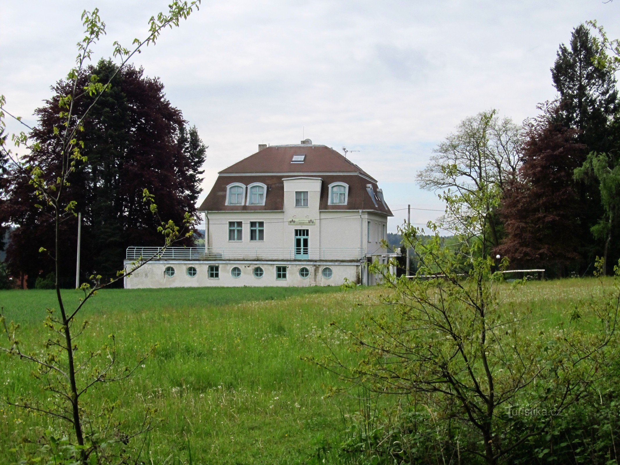 Počasí je sice na vážkách, ale mohlo by být i hůř. Z návsi se vydáváme po červené směrem k…