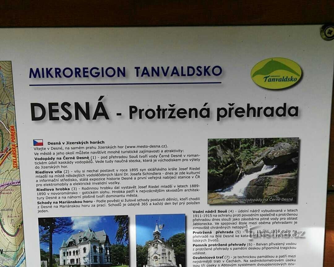 Naše společníá cesta začíná na Exitu 71 dálnce D10 Tanvald. Odtud dále pokračujeme na Železný Brod, Velké Hamry, Tanvald a Desná. V Desné jedeme podle řeky a až se nám řeka vzdálí z dohledu odbočíme doleva, ulice Údolní, a dále pokračujeme po této silnici až k jejímu konci - dále je zákaz vjezdu. zde odstavíme automobil a dále pokračujeme pěšky. Projdeme okolo pily a dále pokračujeme po cyklo…