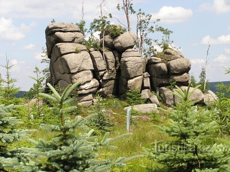 Skupina žulových skal s pěkným Rozhledem po Středním jizerském hřebeni. Místo je nazváno po pytlákovi Hennrichovi, který měl pod nimi úkryt a který byl nedaleko od nich zastřelen lesníkem roku 1813.