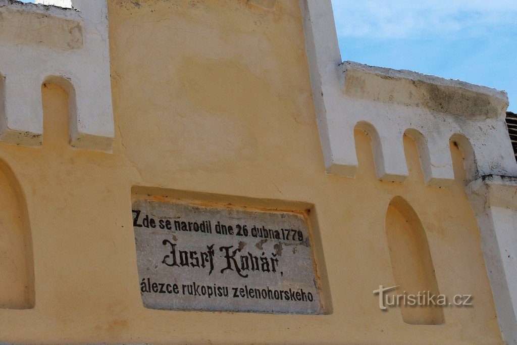 Stavení se nachází v jižní části města, která se nazývá Na Rybníčku. Prochází tudy zeleně značená cesta do Domanic. Samotné stavení upoutá štítem nad vraty. Ve štítě je pamětní deska Josefa Kováře, nálezce Rukopisu zelenohorského. Ten se tady narodil v roce 1779. Důchodní Josef Kovář byl také kaprálem zeměbrany. V roce 1819 ztratil práci, zřejmě kvůli nadměrnému pití a nedokázal se s tím vyrovnat…