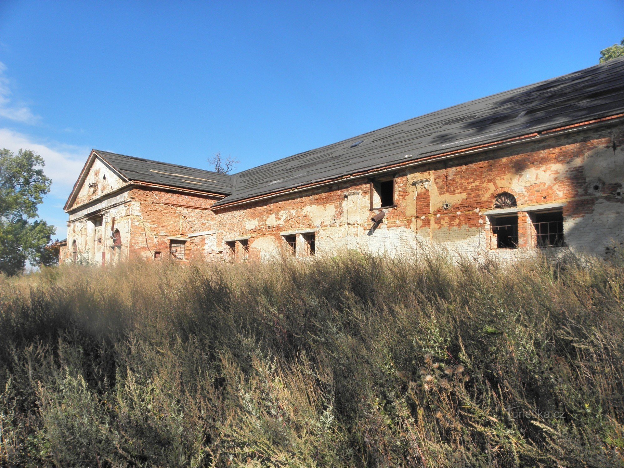 Přesto všechno ti, kdo chtějí, naleznou stopy bývalé slávy - štukové Sloupy, trojúhelníkové štíty...