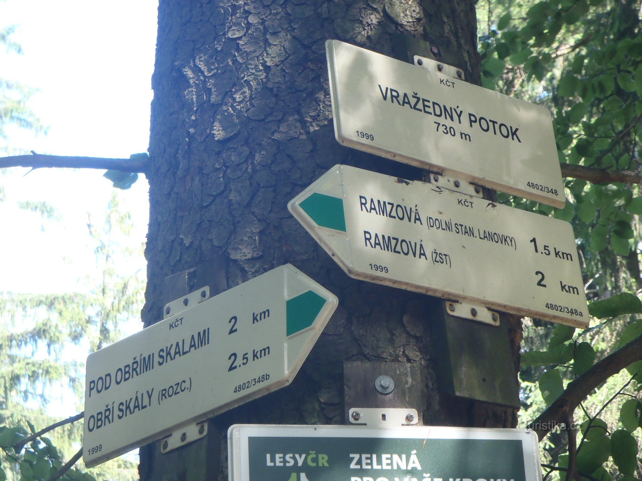 Vydali jsme se od nádraží v Ramzové po zelené značce na rozcestí Pod Obřími skalami. Cesta vede vzhůru kolem lanovky, zatočí vlevo do lesa. V lese bylo příjemně, stoupání minimální.