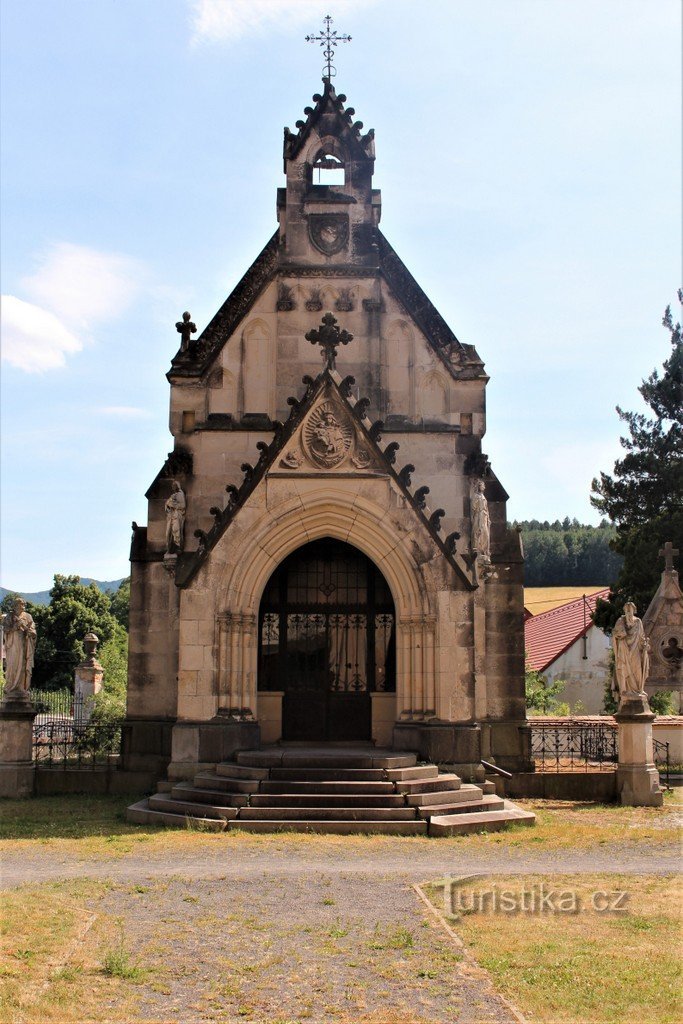 Jižně od kostela se nachází zajímavá novogotická hrobní kaple. Nechal ji postavit podnikatel Gustav Richter podle návrhu architekta Franze Neumanna. Kaple s pětibokým presbytářem má hvězdicovitou klenbu. Uvnitř je kamenný oltář, po stranách lavice a ve stěně nad nimi náhrobní desky. Průčelí začíná schodištěm, nad kterým je předsunutý vchod. Po stranách jsou sochy světic a reliéfy s výjevy z…