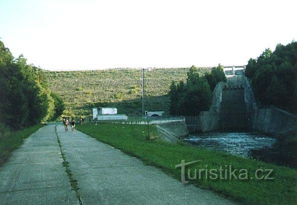 Sypaná přehradní hráz je 290 m dlouhá a v koruně 45 m vysoká. Po…