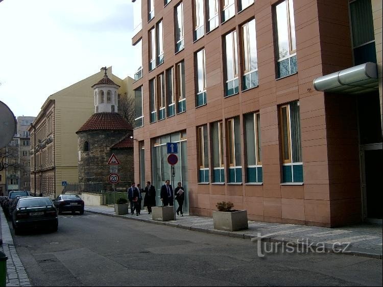 Rotunda Sv.Longina je nejmenší a druhou nejstarší ze tří dochovaných pražských románských rotund. Podle pověsti prý byla původně pohanskou svatyní a teprve příchod křesťanství ji změnil v katolický kostelík. Sloužila jako farní kostelík starobylé osady Rybníček a byla obklopena hřbitovem, užívaným za moru a pro cizince. Dodnes je zde ul. Na Rybníčku a V Tůních, jejichž jména dokládají v místech…