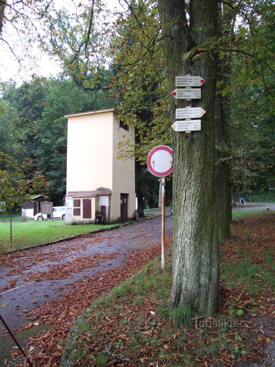 Rozcestím u centrálního parkoviště a vstupu do parku pod konopišťským zámkem prochází červená a žlutá turisticky značená trasa. Žlutá trasa sem přichází z Týnce nad Sázavou a pokračuje dál okolo Konopišťského rybníka a zámku ke tři kilometry vzdálené železniční stanici v Benešově. Červeně značená trasa k parkovišti u zámku Konopiště přichází od severu z Poříčí nad Sázavou a od rozcestí míří ke…