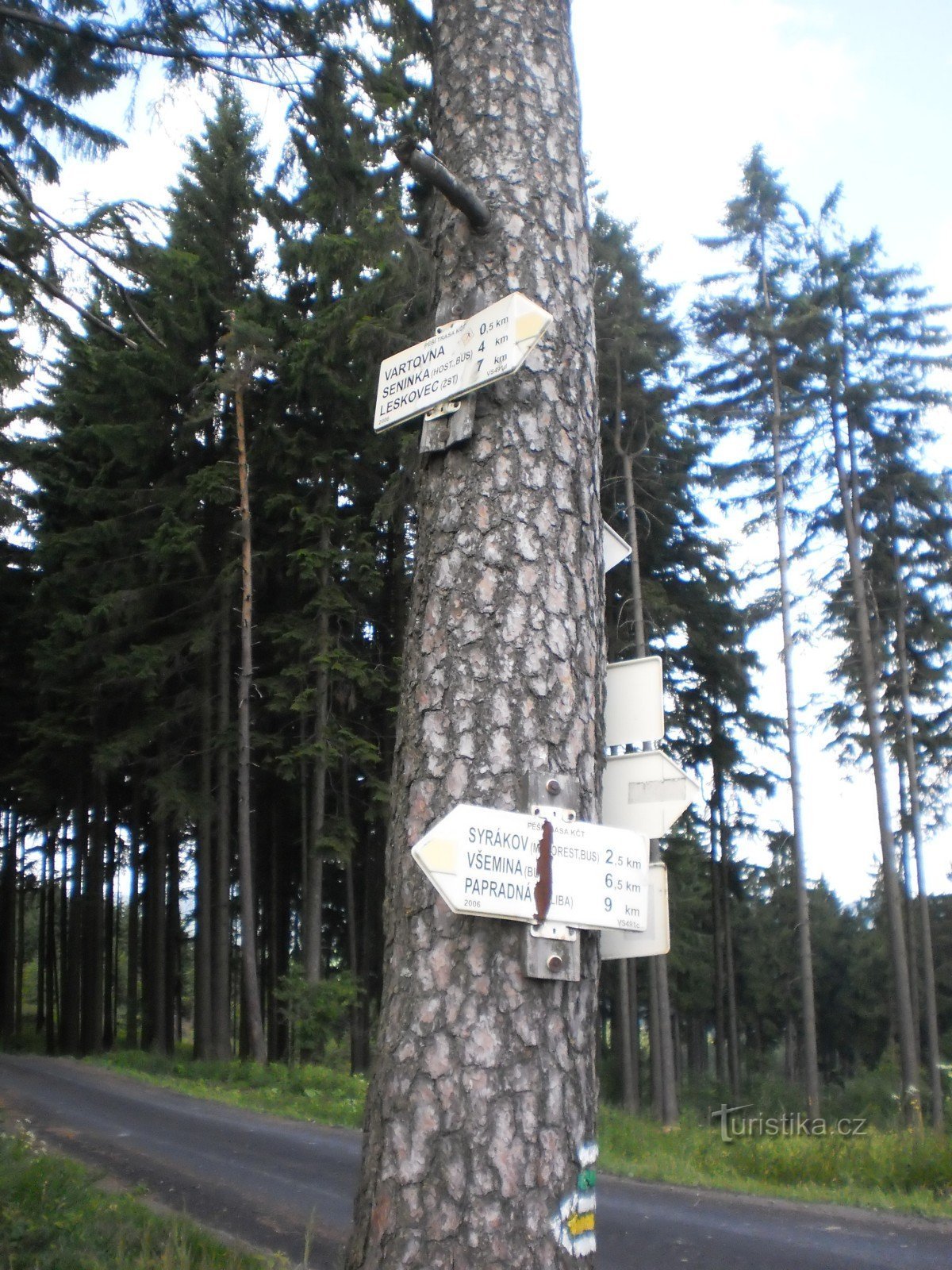 Půl kilometru pod kopcem Vartovna, kde se nachází stejnojmenná rozhledna, o které se více dočtete zde, se rozdělují dvě turistické stezky. Rozcestí Pod Vartovnou tak nabízí možnost putovat jednak na vrchol, jednak do Liptálu a dále na Hošťálkovou po zelené, jednak po žluté na Syrákov a Všeminu. Po zelené půjdete částečně po zpěvněné komunikaci. Kilometr za rozcestím pak můžete shlédnout…