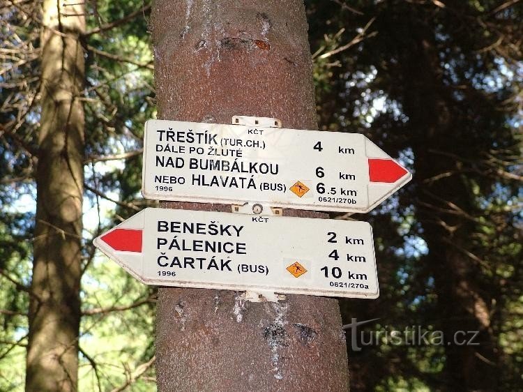 Rozcestí červené a žluté turistické značky pod vrcholem Polany, která se nachází jihovýchodně od obce Horní Bečvy. V blízkosti místo dalekého rozhledu.