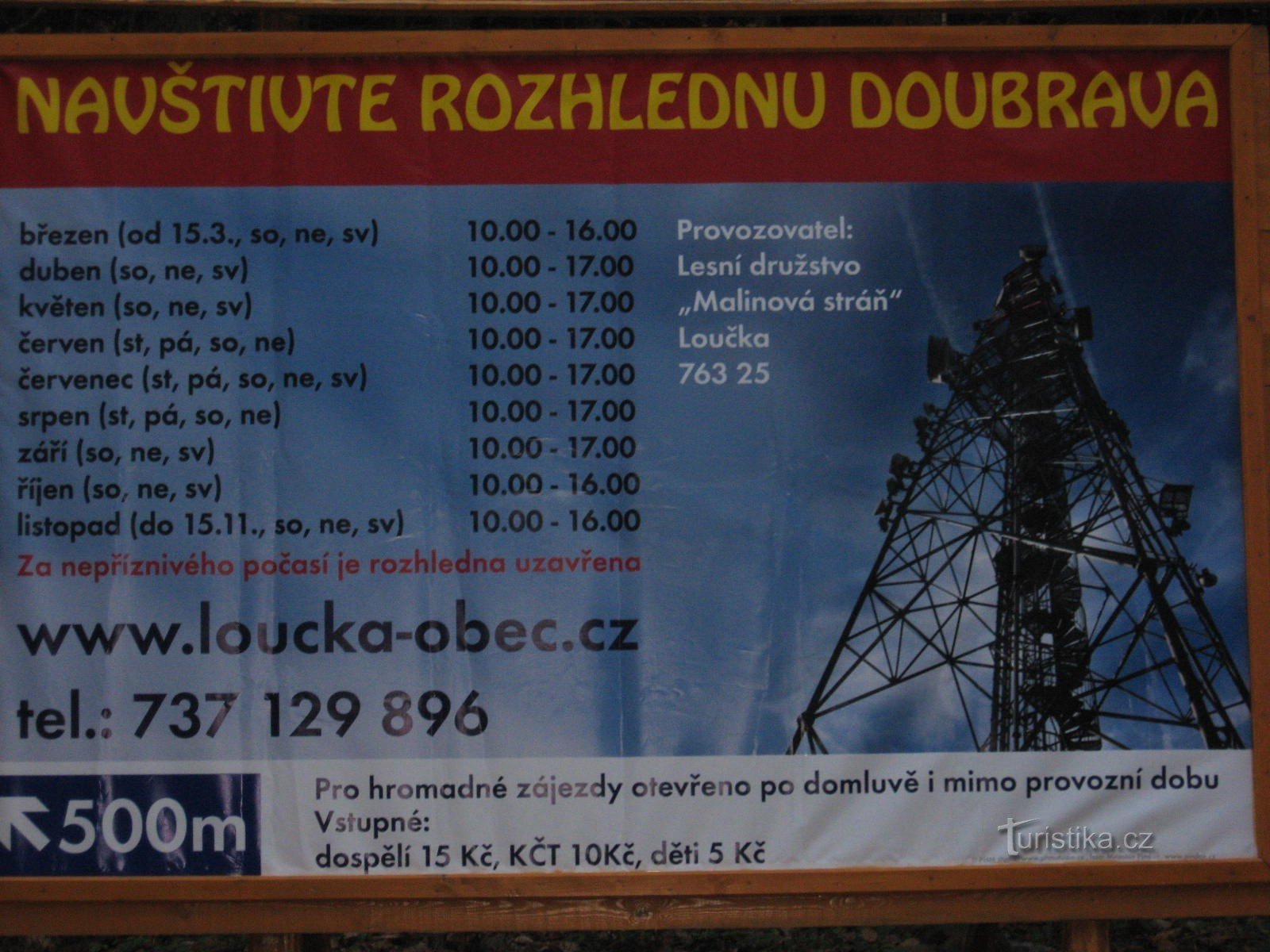 Rozhledna Doubrava se nachází na kopci Doubrava mezi městem Vizovice (4km) a obcí Loučka (2,5km). Ze Zlína je to 20km. Autem se dá zaparkovat na menším odstavném parkovišti, odkud se dá vyjít přímo lesem do kopce. Nebo po asfaltové cestě, která vede až k rozhledně (500m). Rozhledna má turistickou známku č.1116, která se dá sehnat přímo na rozhledně, nebo na obecním úřadě v Loučce. Rozhledna je…