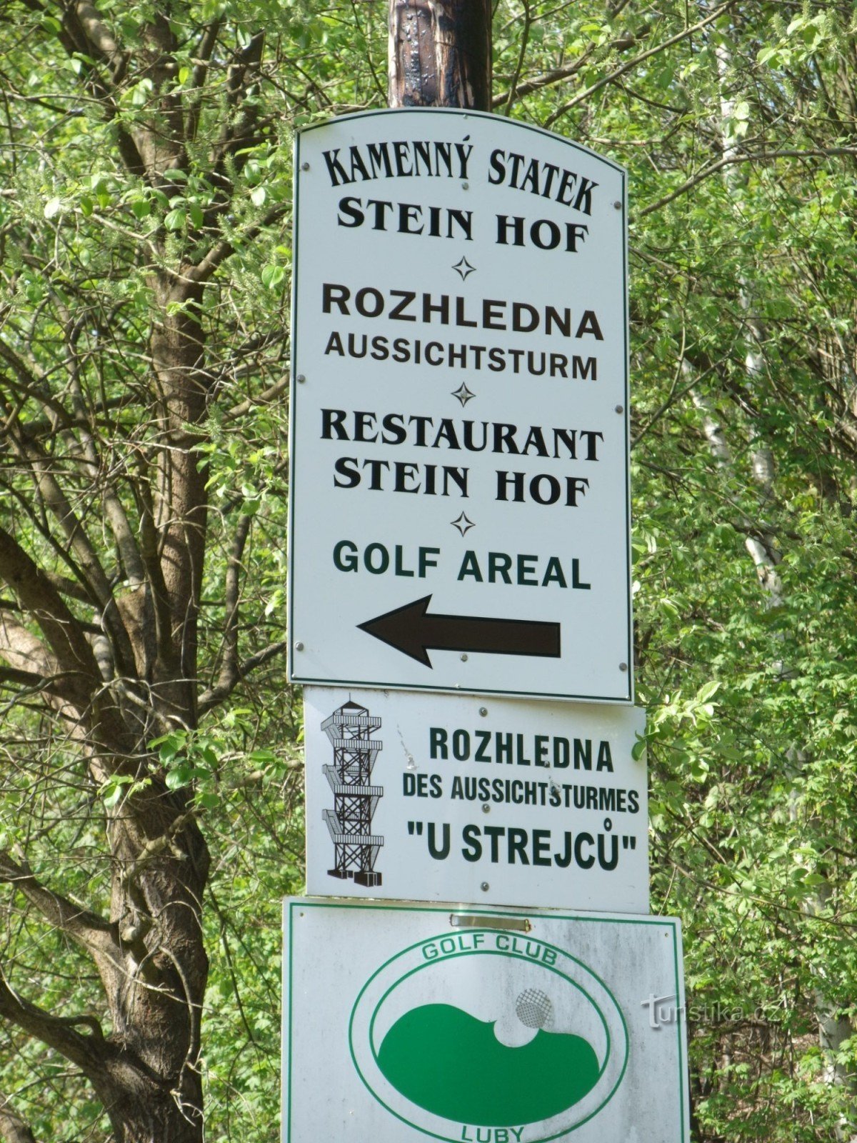 Pod rozhlednou je golfové hřiště s možností občerstvení v Restauraci.