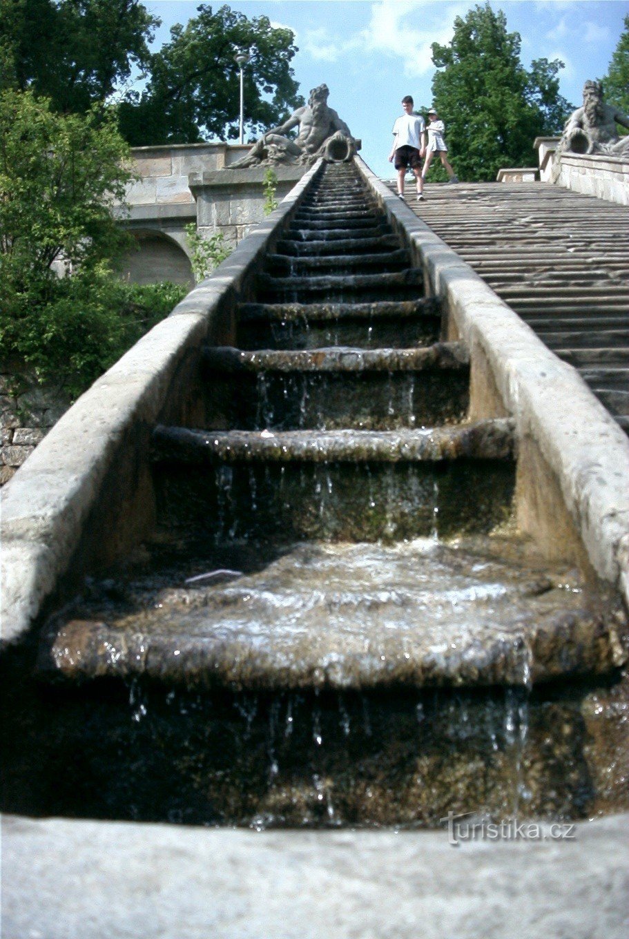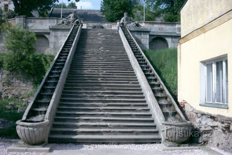V letech 1692 až 1696 dal majitel panství hrabě František Antonín Špork (* 1662, + 1738) svést do kamenné nádrže tři prameny vyvěrající ve stráni nad levým břehem Labe. Tím odstartoval novodobé dějiny Kuksu. Již v roce 1704 nad prameny stál zámek a pod ním lázně. Zámek s lázněmi spojovalo kamenné schodiště tři metry široké mající 52 schodů. Zábradlí na obou stranách schodiště tvořily kaskádovité…