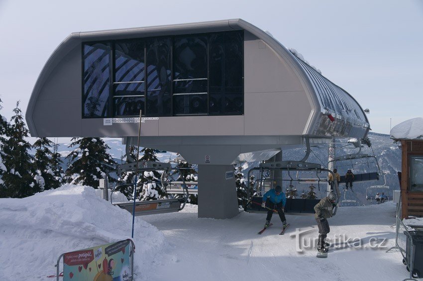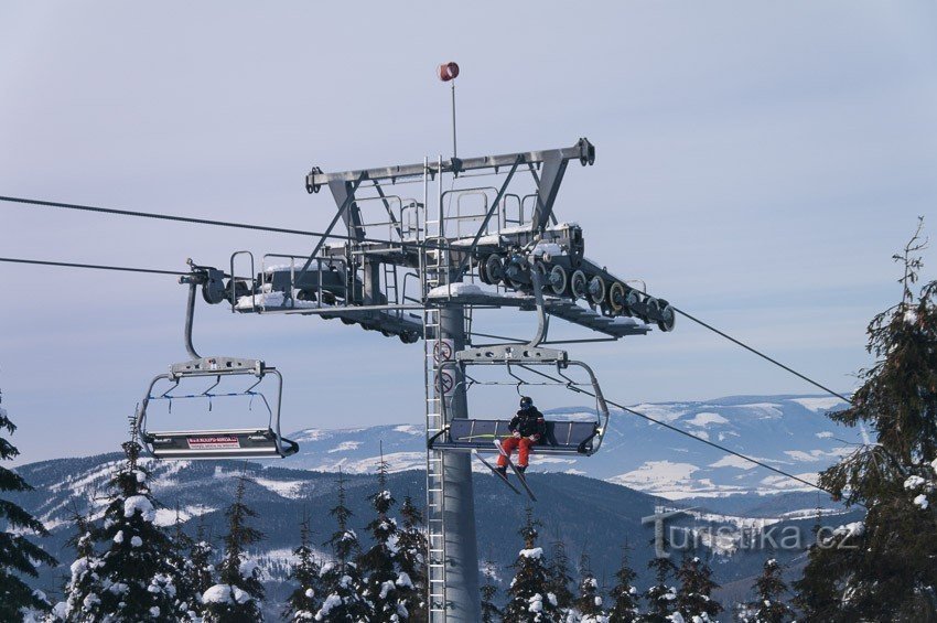 Největší chloubou lyžařského areálu v Koutech nad Desnou je kromě úžasné červené sjezdovky, která nese název Medvědí, lanová dráha vybavená odpojitelnými šestimístnými sedačkami. Samotné parametry lanové dráhy jsou úctyhodné. Pohonný systém zajišťuje elektromotor na horní stanici o výkonu 632 kW (tj. Asi 860koní), lanovka má 17 podpěr, celkem 3 nosnotlačné, 1 tlačná. Šikmá délka lanovky je 1933 m…