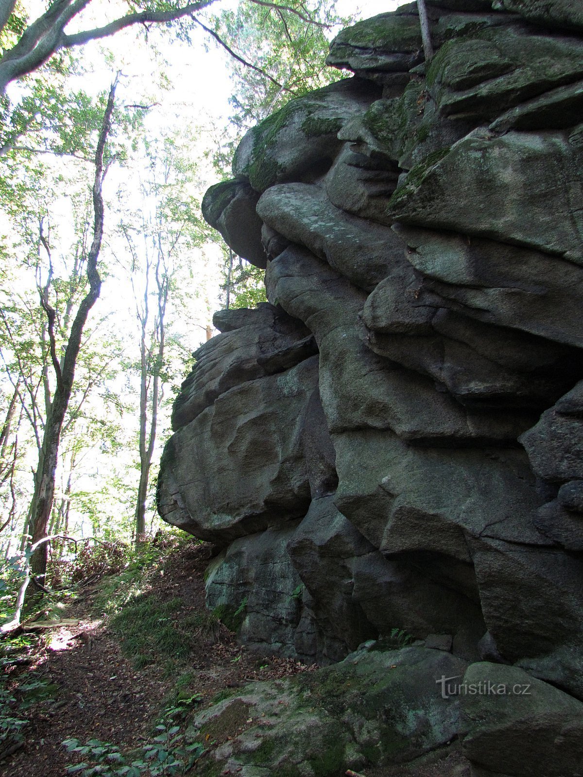 Jednou z nejkrásnějších mnou viděných skal v Žulovské pahorkatině byla ta, vypínající se z temene 447 m vysokého kopečka a nazývající se hezky libozvučně Píšťalou. Celá vyvýšenina je přírodní památkou, je zarostlá smíšeným lesem (s převahou buků) a ten ze všech stran obklopuje také vlastní skalisko. To naštěstí dosahuje výše okolo 10 metrů a jen tak se v tom podrostu neztratí. Hlavně od severu…