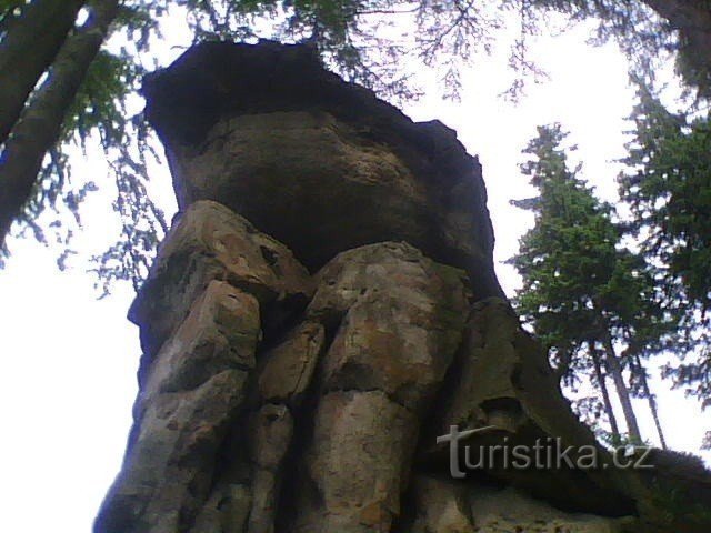 Tato skála se nachází v Dolní Lomné. Dostanete se k ní po modré turistické značce z Lomné. Na rozcestí ( 49°31'49.421"N, 18°41'59.832"E ) však dále nepůjdete po cestě ,ale rovně úzkou stezkou. Na konci stezky se před vámi objeví skála. Na kamenný komín se bez lana nedostanete, protože je oddělený a vyvýšený od zbytku skály. Pokud máte lano a další horolezecké vybavení ,tak není problém vylézt…
