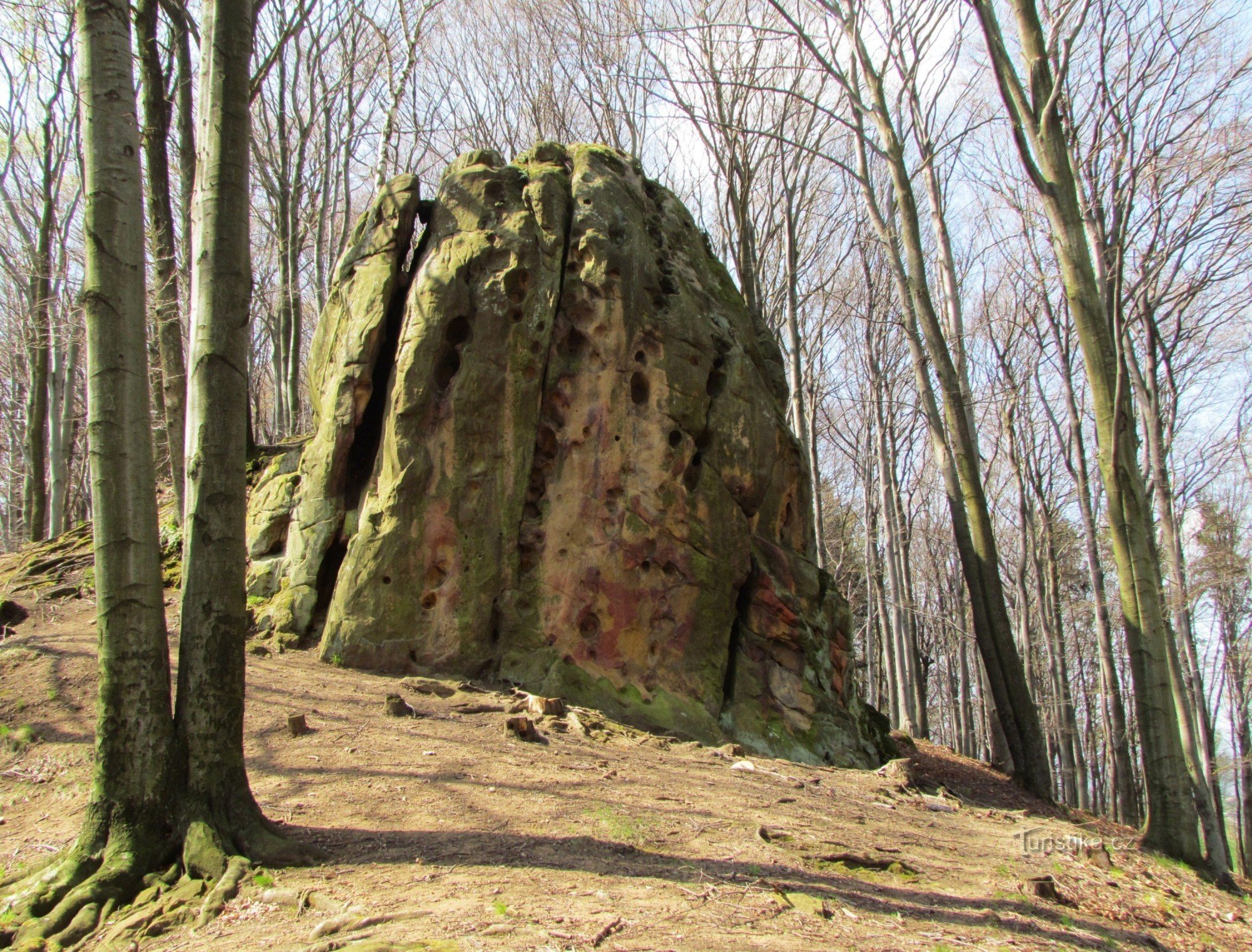 Jednu z nejzajímavějších a nejmalebnějších skal Vizovických vrchů najdeme pouhý 1 km od obce Provodov, asi ve dvou třetinách vrcholového hřbetu vrchu Rýsova (543 m). Nevede sem zatím žádná turistická značka, přístup je ale velmi jednoduchý: od konce Provodova, od silnice směrem na Březůvky odbočuje vlevo Kolem posledního stavení polní cesta. Po ní stoupáme pořád po rozlehlé louce až po okraj…