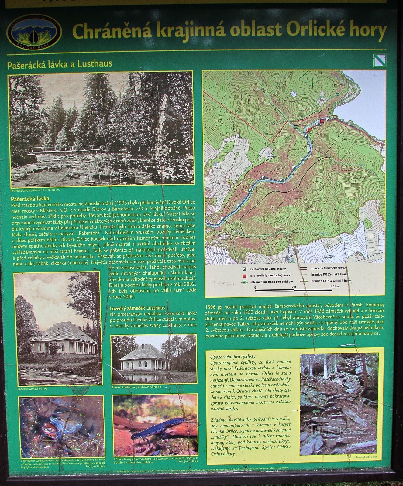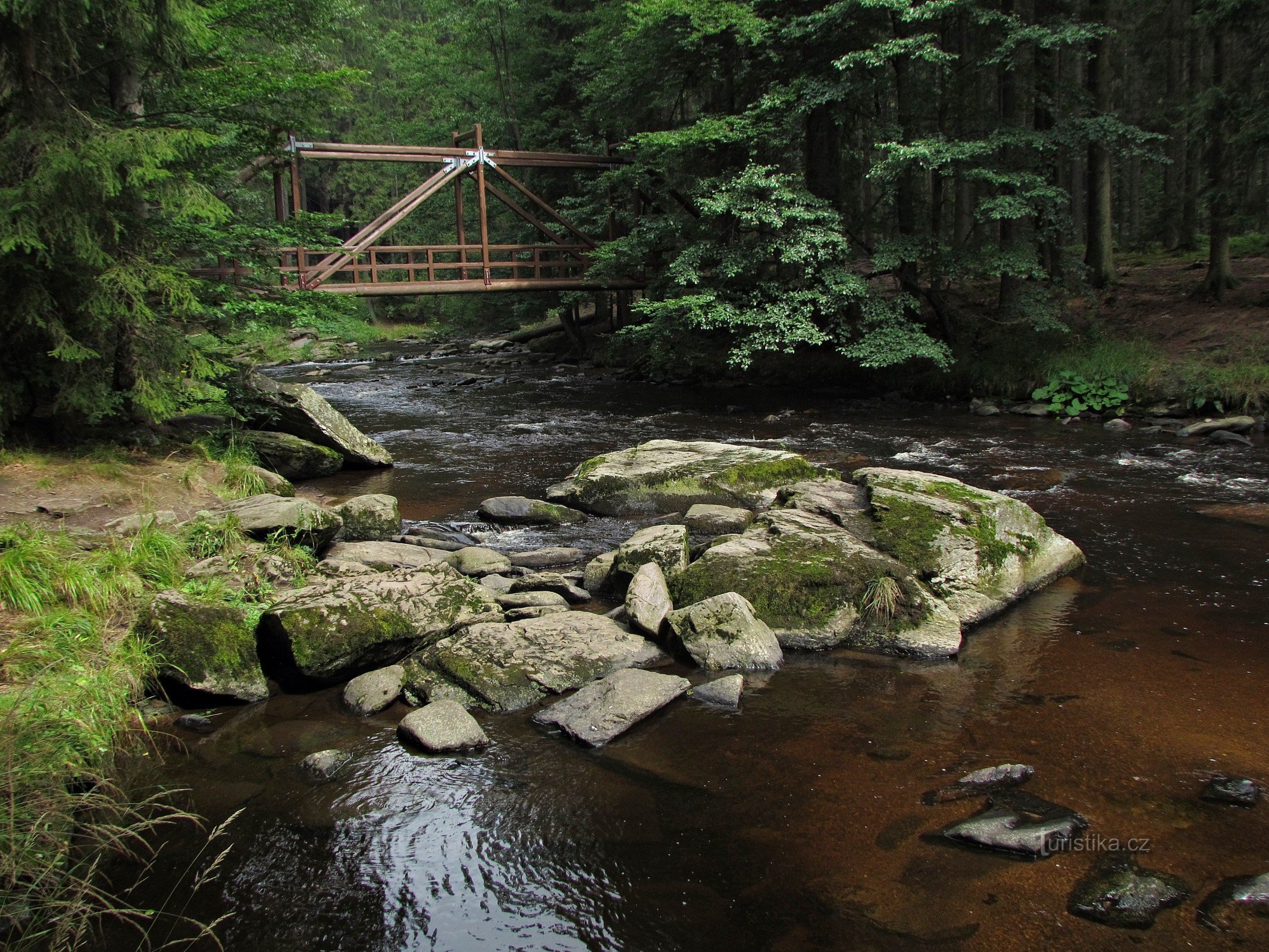 Průnik Divoké Orlice z Polska na naše území patří k těm nejromantičtějším místům v celých Orlických horách. I přes viditelné produkty lidské civilizace - blízkou chatu na Číháku, kamenný most přes řeku a dřevěnou Pašeráckou lávku o něco níž po proudu - se jedná o ryzí divočinu. V úseku přibližně 300 metrů si tu řeka vybojovala průnik mezi prastarými horninami Českého masívu a výsledná podoba…