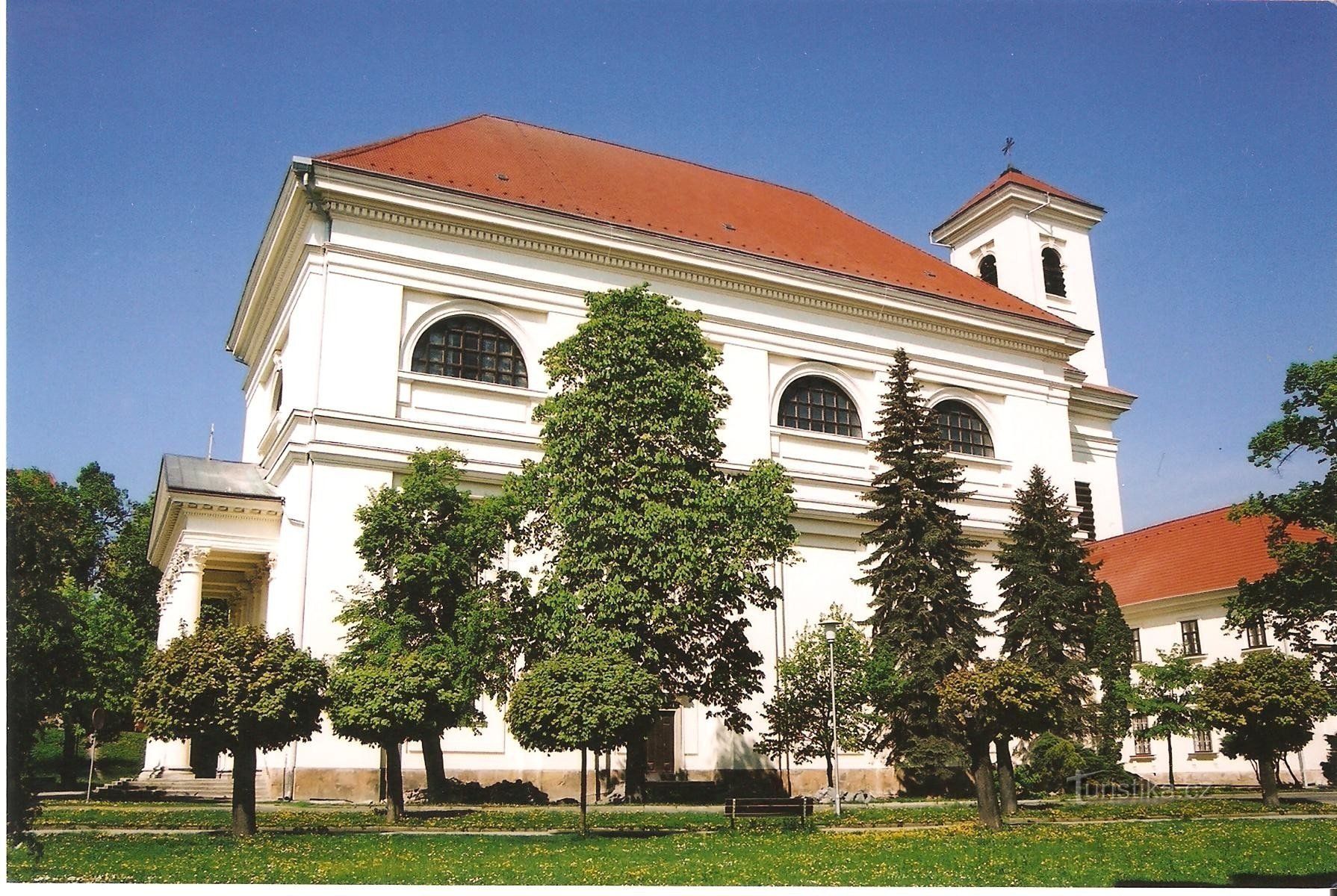 Nachází se na severní straně Palackého náměstí v historickém jádru města. Patří mezi jedinečné památky klasicistní architektury u nás. Byl postaven na popud Václava Antonína Kounice v letech 1786-89 podle plánů vídeňského dvorního architekta Ferdinanda Hetzendorfa z Hohenbergu. Jedinečný je i stylový interiér se třemi kazatelnami. Autorem figurální výzdoby na průčelí je vídeňský sochař Franz…