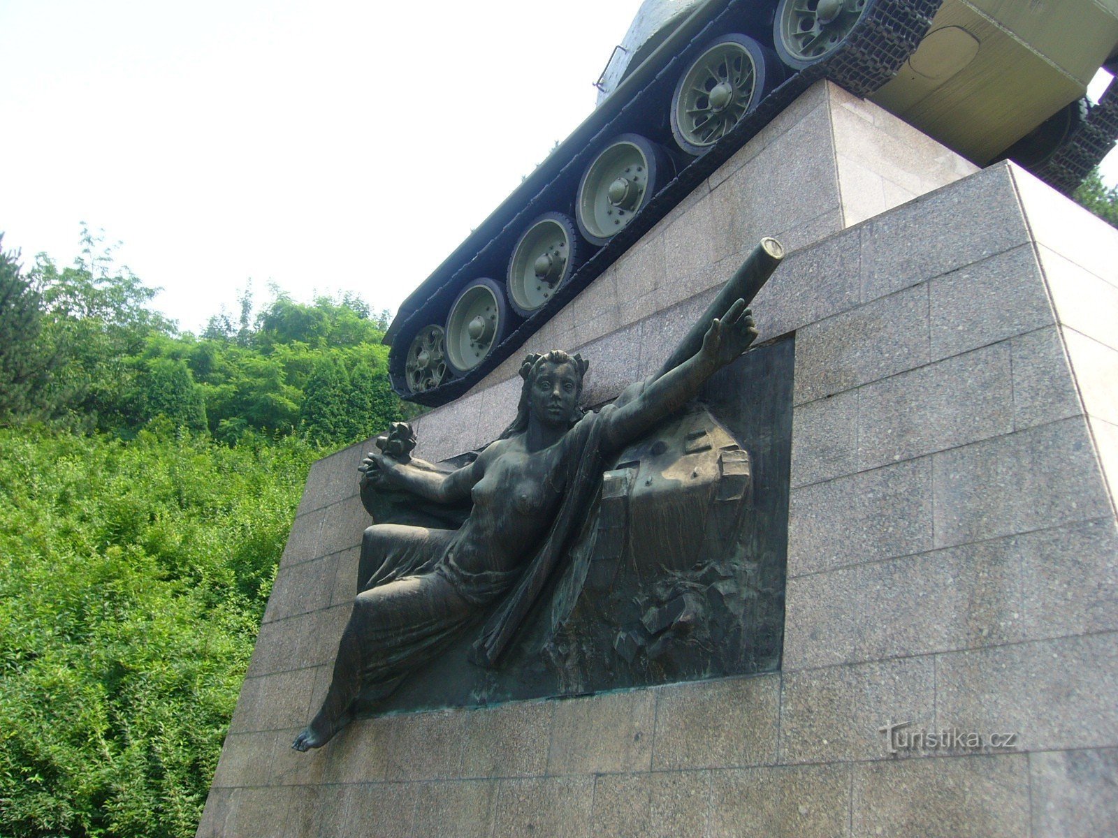 Je to skutečný původní tank T- 34, který svou cestu ukončil právě v Ostravě.