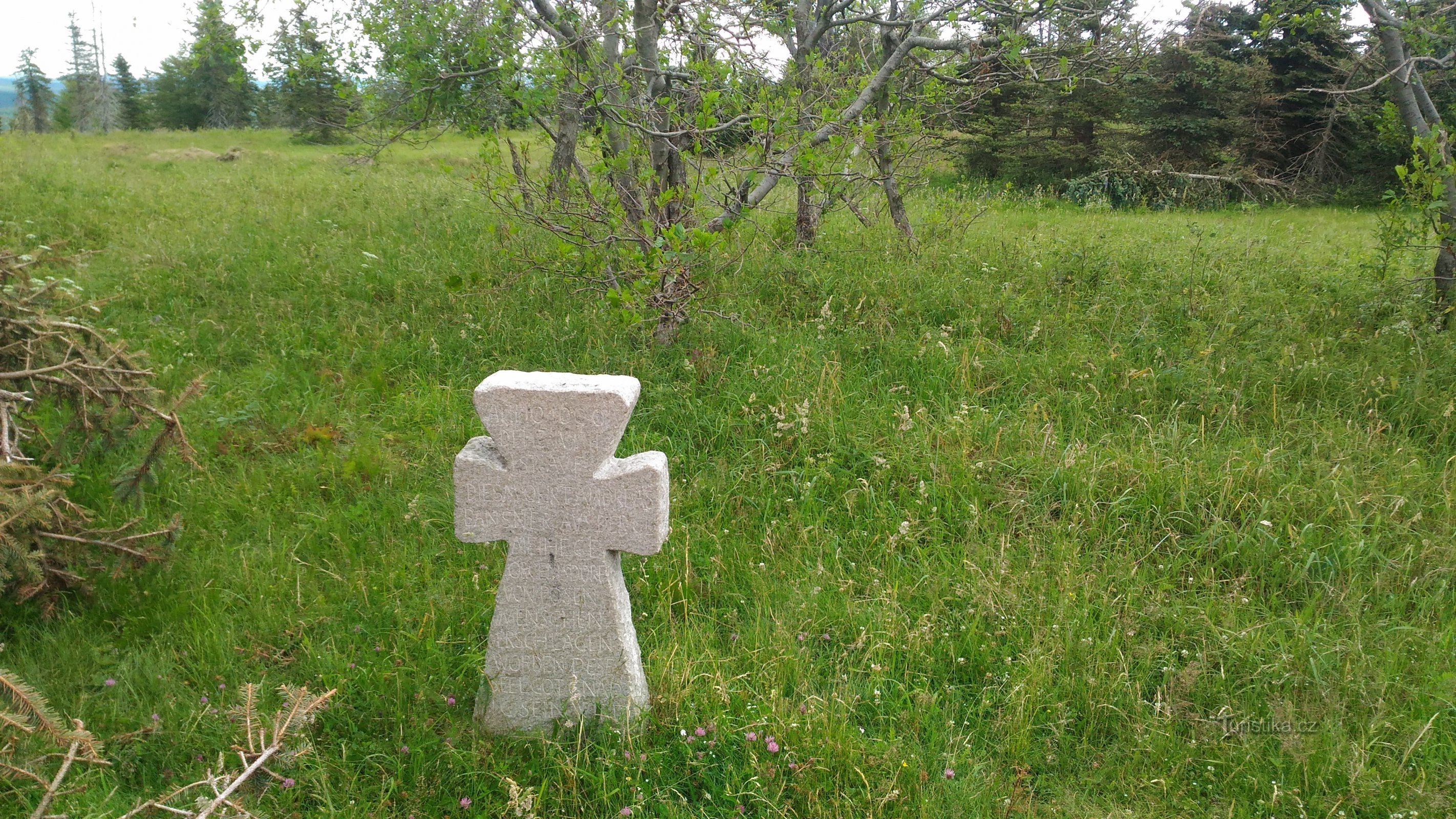 Smírčí kříž u zámečku Lichtenwald v Krušných horách.