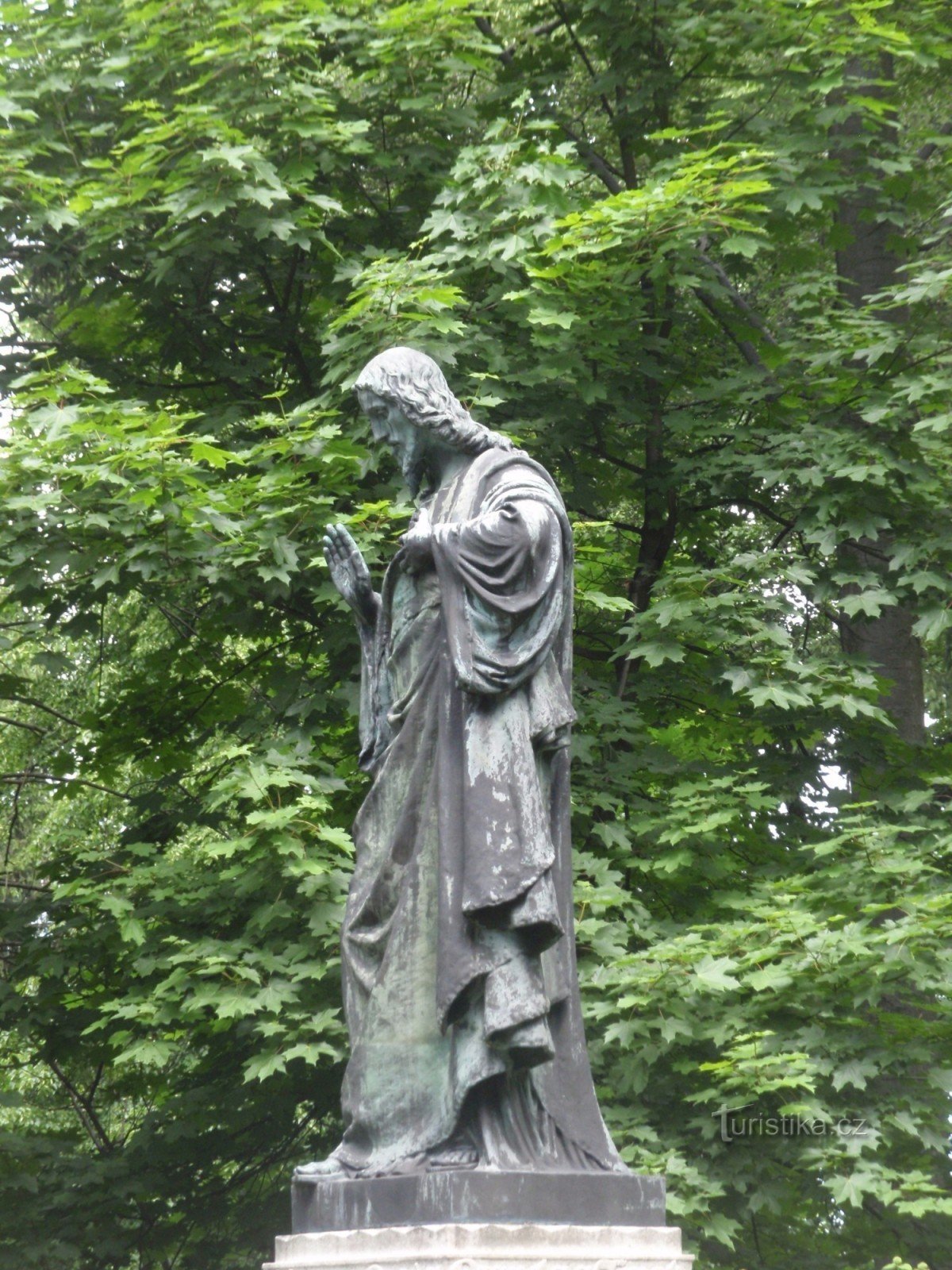 Cestou po schodišti od Vodní kaple potkáme nejprve monumentální - třímetrovou, i přesto však neobyčejně líbeznou bronzovou plastiku Krista neboli Božského srdce Páně z roku 1919 od známého pražského sochaře Čeňka Vosmíka (1860 – 1944).