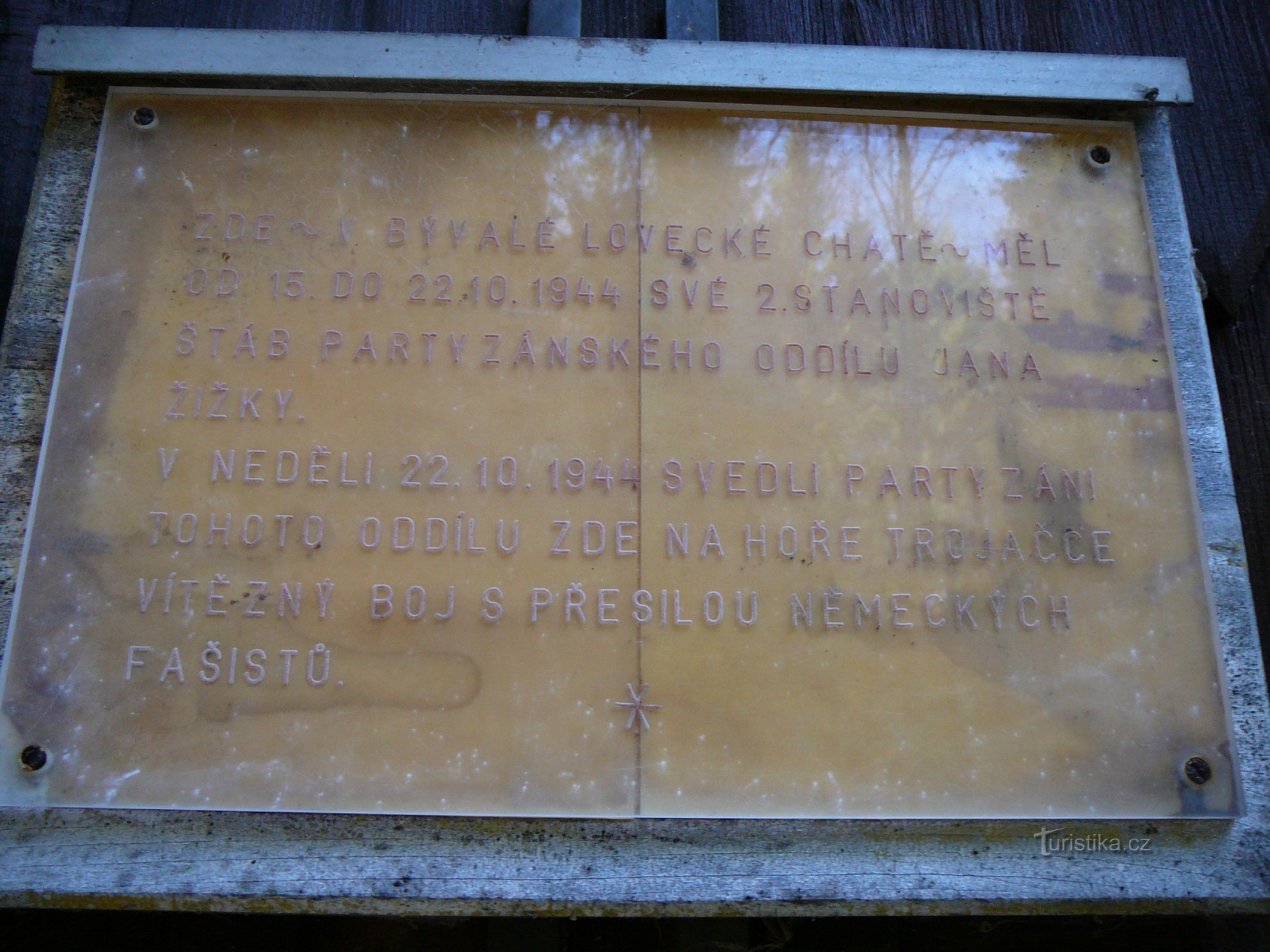 V říjnu 1944 pod horou Trojačka měly útočiště hned dvě významné partyzánské skupiny: Wolfram (vyslaný vládou ČSR z Londýna) a 1. ČS brigáda Jana Žižky pod velením J. Ušiaka. Byl jím stále stojící, dnes skoro zapomenutý a málo navštěvovaný srub (nyní chatka) hajného Josefa Faldyny. Místo je stále pohodlně přístupné po zpevněných lesních cestách a nachází se na horním toku Panského potoka …