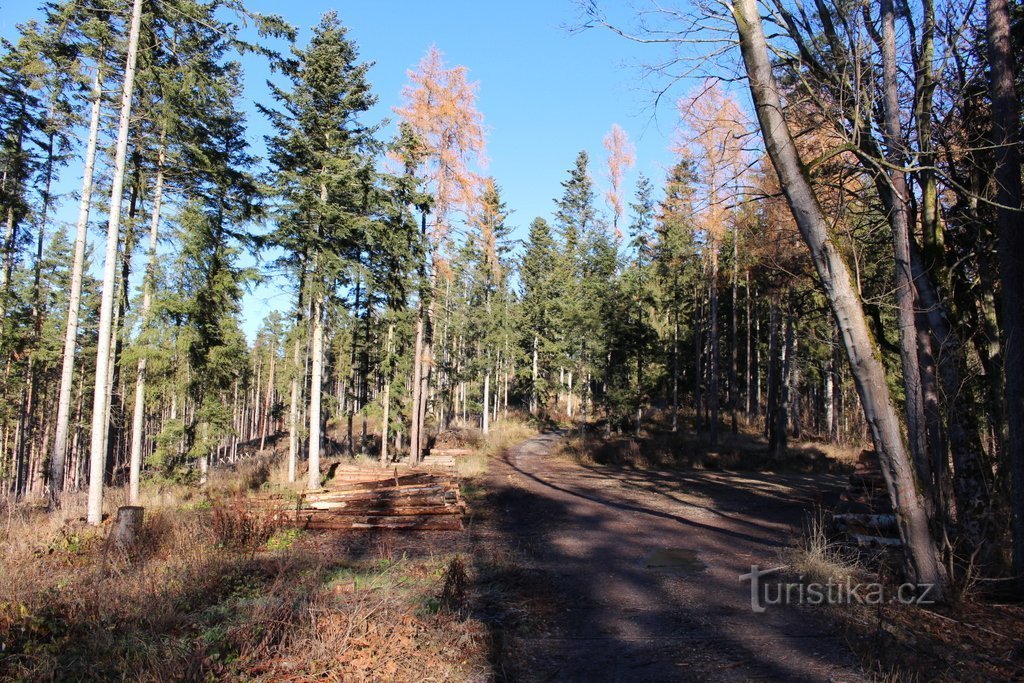 Autobusová zastávka nedaleko vísky Roku je naším výchozím místem. Odtud jdeme po silničce k uvedené vsi a při jejím západním okraji docházíme ke křížku. Odtud pokračujeme po modré, která mírně stoupá jižním svahem hory Kalovy (727 m.n.m.). To již máme po obou stranách cesty les, který i na konci listopadu stále čaruje barvami. Vládnou tady jehličnany, mezi nimiž hrají prim smrky. Rostou tady i…