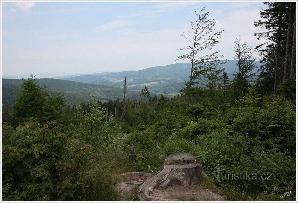 Významná křižovatka turistických cest. Červeně značená spojuje Železnou Rudu, Čertovo a Černé jezero s Lovečnou a Zadními Chalupami, prochází celý Královský hvozd. Modrá značka přichází od Hojsovy Stráže a Hamrů a pokračuje na Ostrý, případně do Bavorska. Více na fotografiích.