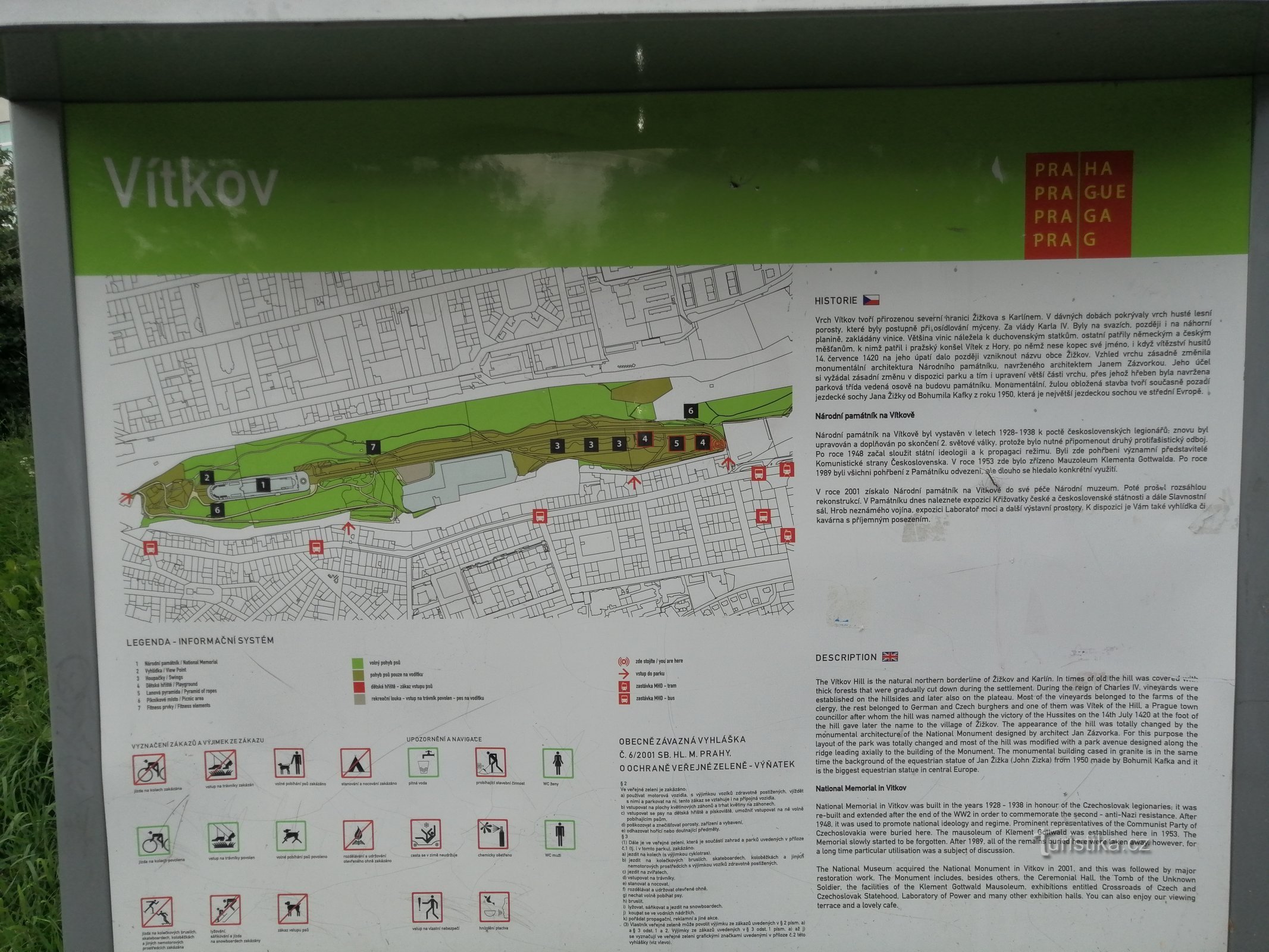 Na dnešní výlet jedeme metrem A na Želivského a odtud tramvají č. 11 do zastávky Strážní. Přejdeme silnici a ulicí Strážní stoupáme nahoru až narazíme na hriště a ceduli střed Prahy, střed se nachází přímo na hřišti . Odtud jsme to vzali přes Krejcárek, Pražačku a Ohradu na Vítkov - cca 2 km. Domů jsme pak jeli opět tramvají č. 11 z Ohrady. U zastávky Strážní jsme si v potravinách koupili bagetu…