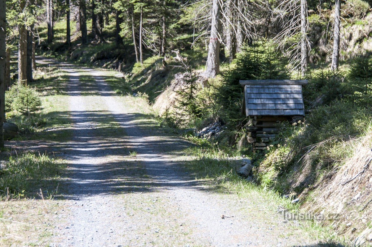 Na mapách Mapy.cz studánka nese jméno bezejmenná, ostatně i dřevěná chaloupka či domeček, který studánku krášlí nenese žádné pojmenování (snad jen, že ji zhotovily Lesy ČR). Svou polohou by se třebas mohla jmenovat Pod Ztracenými kameny, případně pramen Splavského potoka. Ten tu skutečně pramení, nemá ovšem jeden pramen, ale celé prameniště, potok, spíš potůček se utváří v několika pramíncích,…