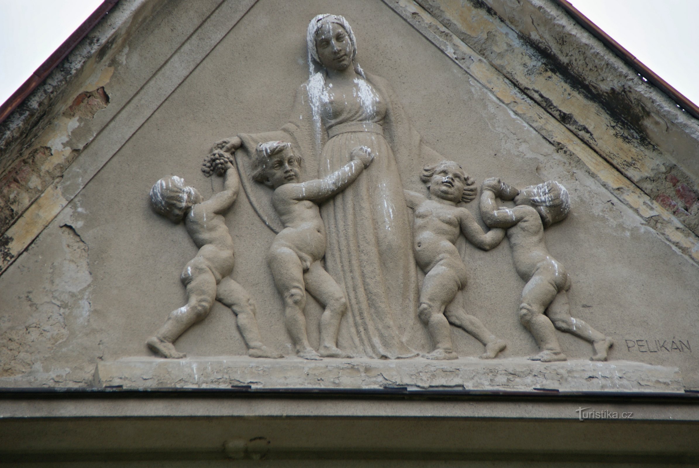 Pelikánův reliéf „Humanita s dětmi“, zdobící průčelní vrcholový štít hlavní budovy šumperské Sanatorky, je dnes možná nejčastěji citovaným sochařským dílem v České republice. Moravský – pro mnohé pouze olomoucký - sochař Julius Pelikán sice nedosahuje věhlasu M.B. Brauna nebo Olbrama Zoubka a Humanitu neobdivuje tolik turistů jako Štursovu ungeltskou Noc, ale Sanatorka a tento monumentální reliéf…