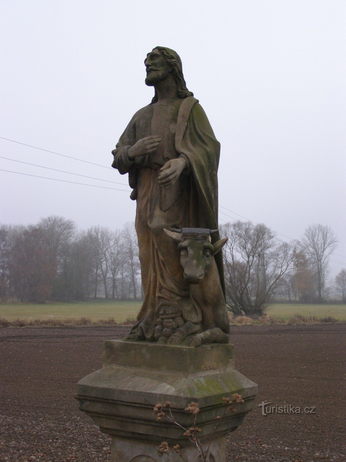 Sochy sv. Václava, sv. Jana Nepomuckého, nebo sv. Panny Marie jsou v naší krajině k vidění celkem často. Socha sv. Lukáše, ochránce dobytka, jen výjmečně. Jednu sochu sv. Lukáše nalezneme při silnici mezi Humburky a Novým Bydžovem. Dílo je tvořeno zdobeným soklem, na kterém stojí sv. Lukáš s mládětem skotu. Dle nápisu na soklu pomníku dali sochu postavit manželé Lhottovy v roce 1858.